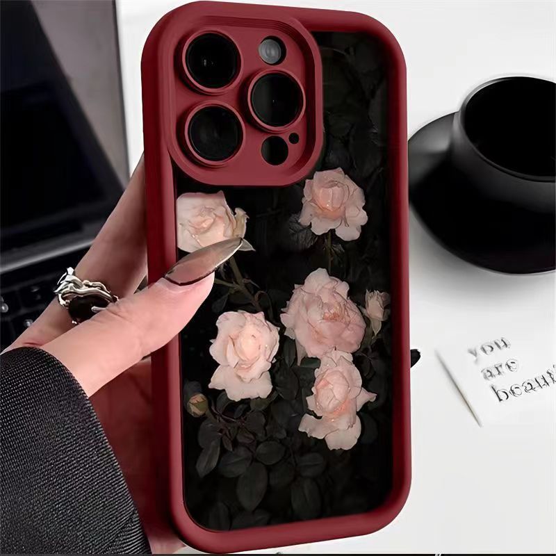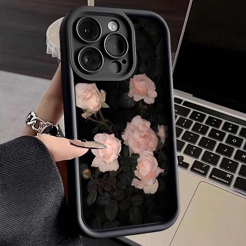 高竹阶梯玫瑰花适用苹果15ProMax手机壳iPhone14新款13软12女11