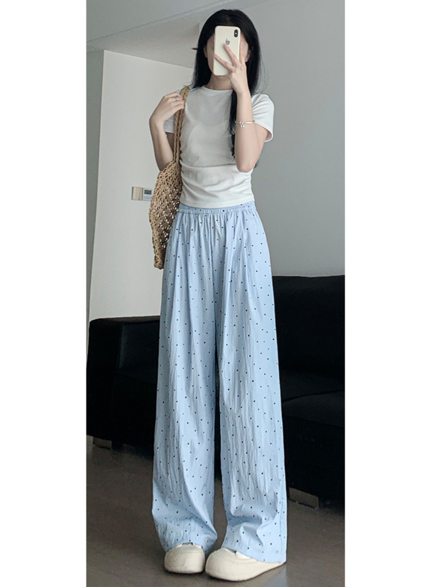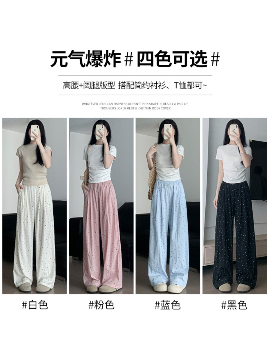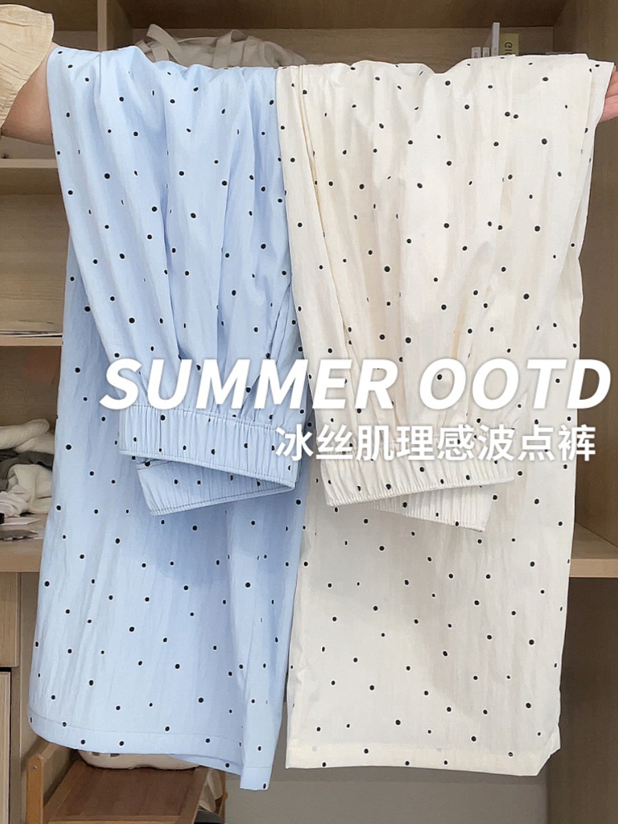 波点阔腿裤女夏季薄款新款直筒小个子慵懒遛弯防晒冰丝山本裤
