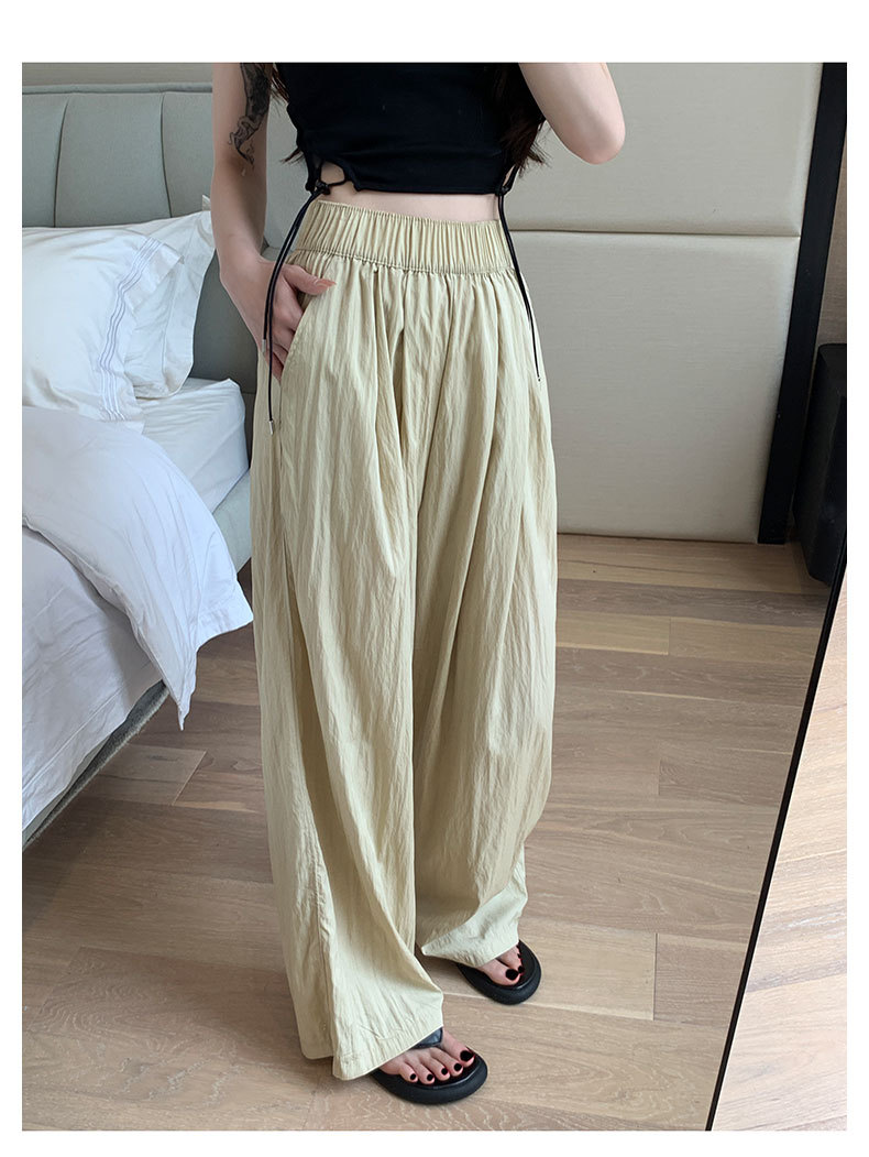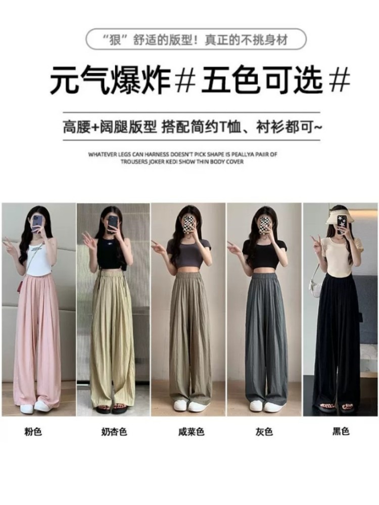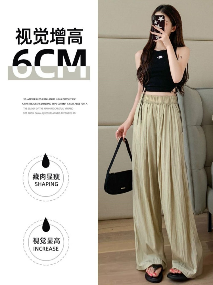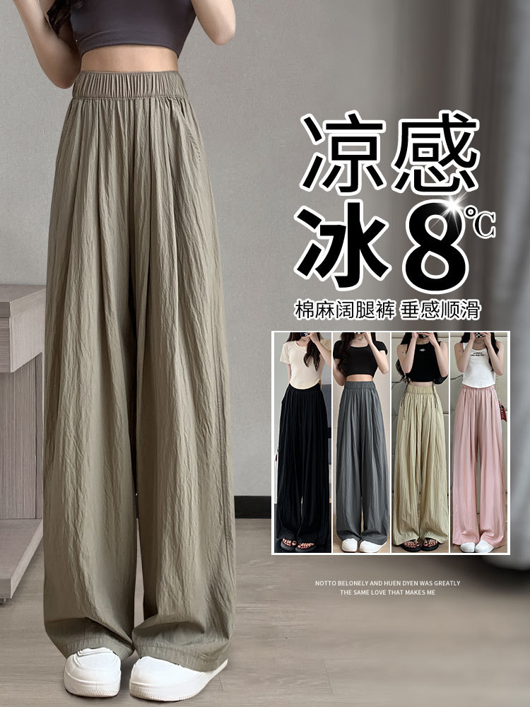 冰丝棉麻打底裤女夏季薄款摺皱休闲裤子直筒高腰垂感透气阔腿裤
