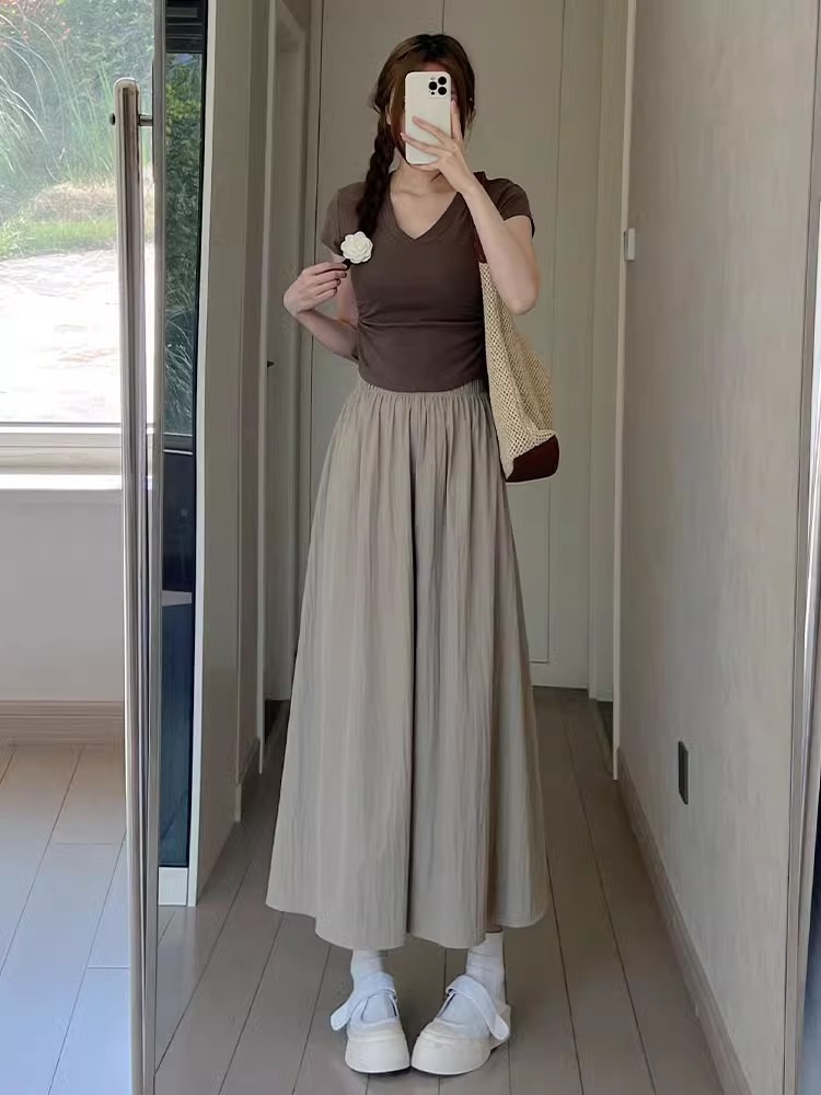 山本裙裤女夏季薄款新款小个子高腰a字半身裙宽松慵懒阔腿裤