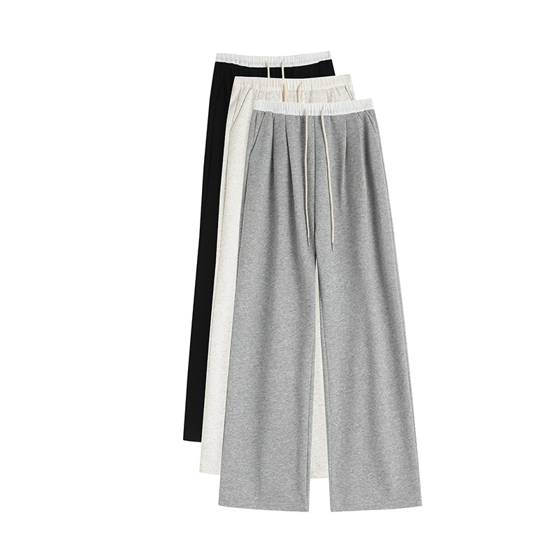 美式黑色运动裤女春秋新款高腰宽松休闲卫裤垂感直筒阔腿裤子