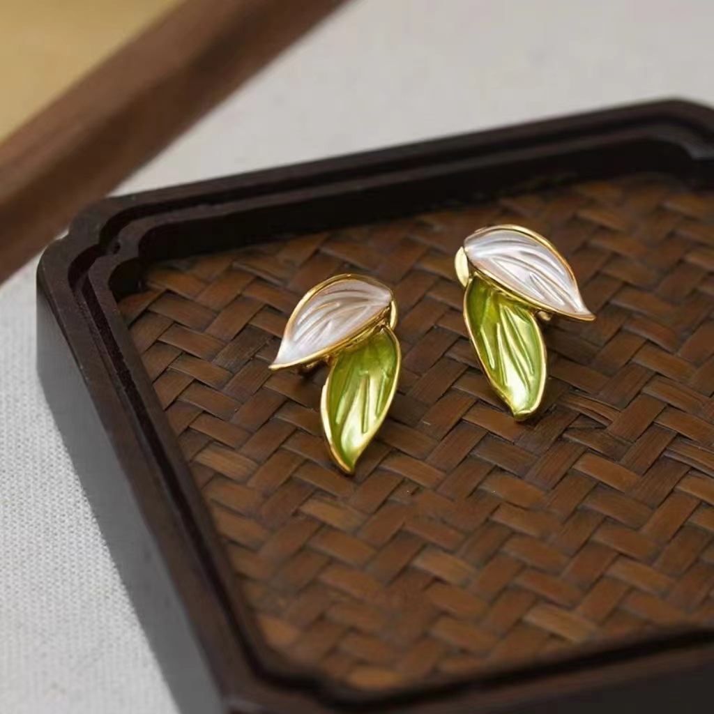 「竹叶」新中式夏天小清新复古耳钉百搭高级感耳饰气质蚊香盘耳夹