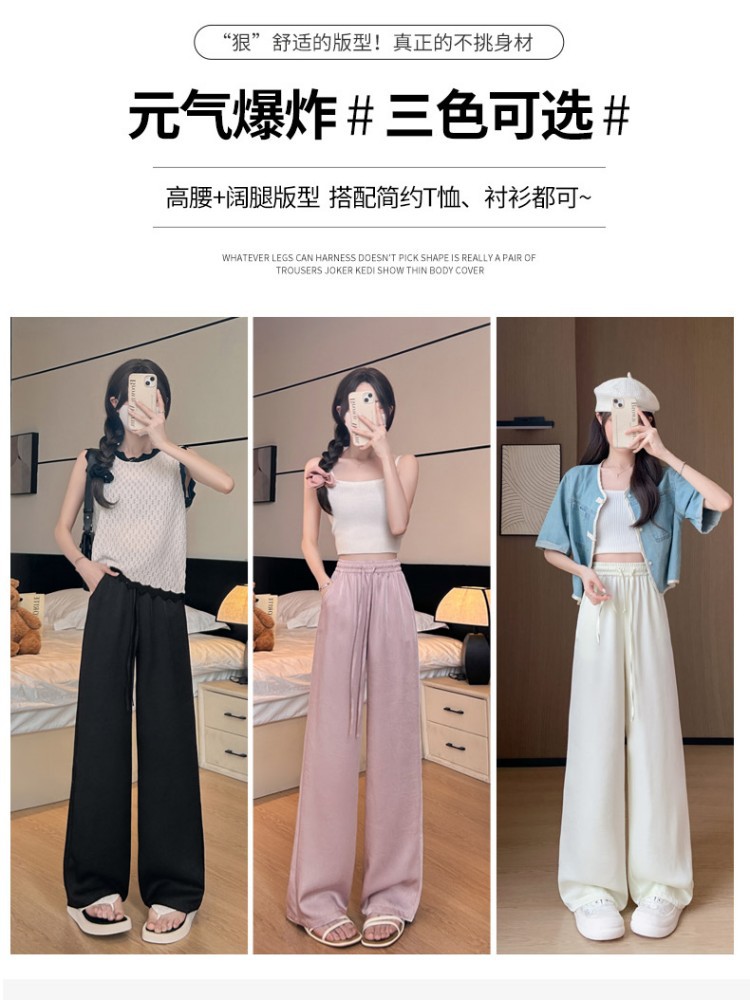 白色新中式阔腿裤女夏季新款高腰显瘦休闲裤醋酸拖地冰丝国风裤子