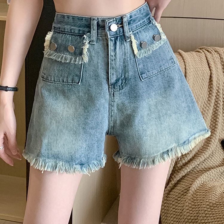 高腰牛仔短裤女夏季薄款新款宽松显瘦设计感毛边a字阔腿热裤