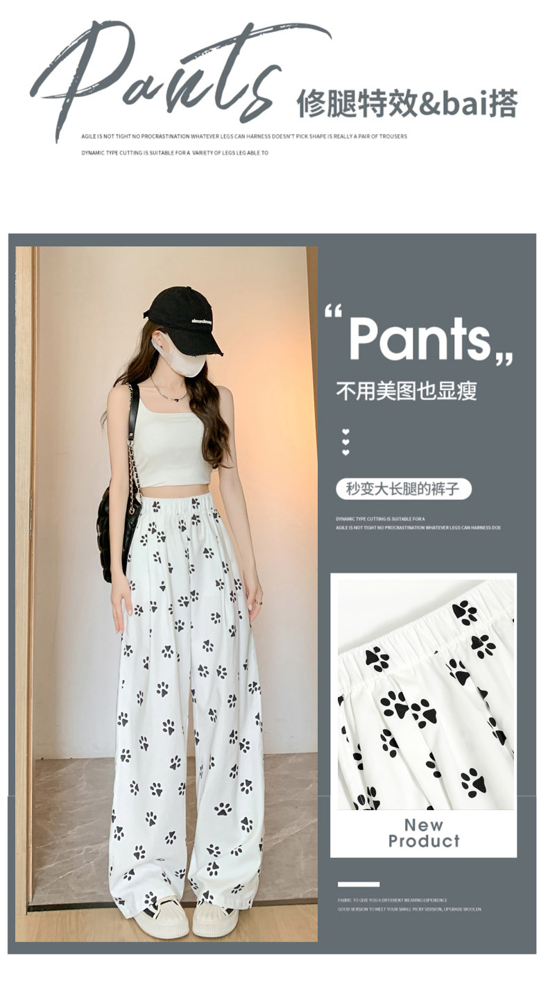 慵懒风狗脚印山本裤女装春夏季宽松休闲直筒高腰白色阔腿裤子