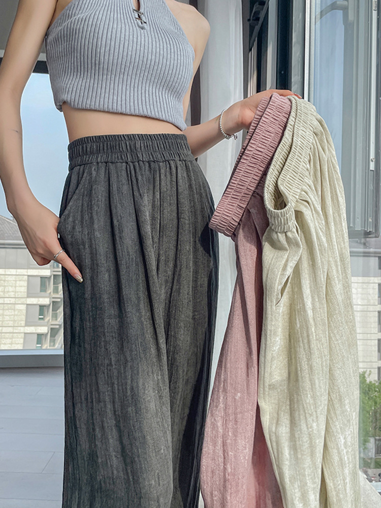 冰丝扎染脏脏裤夏季薄款慵懒风宽松阔腿裤女显瘦垂感直筒休闲