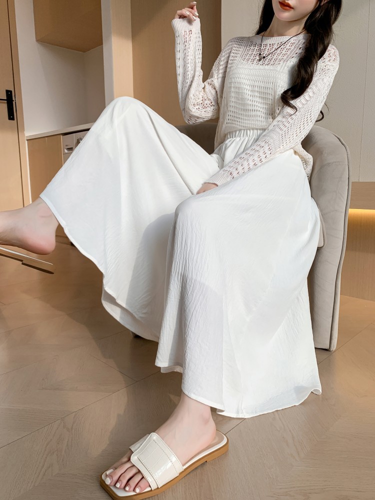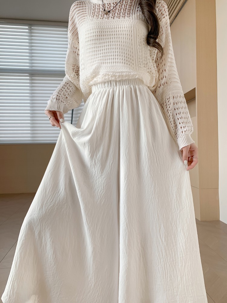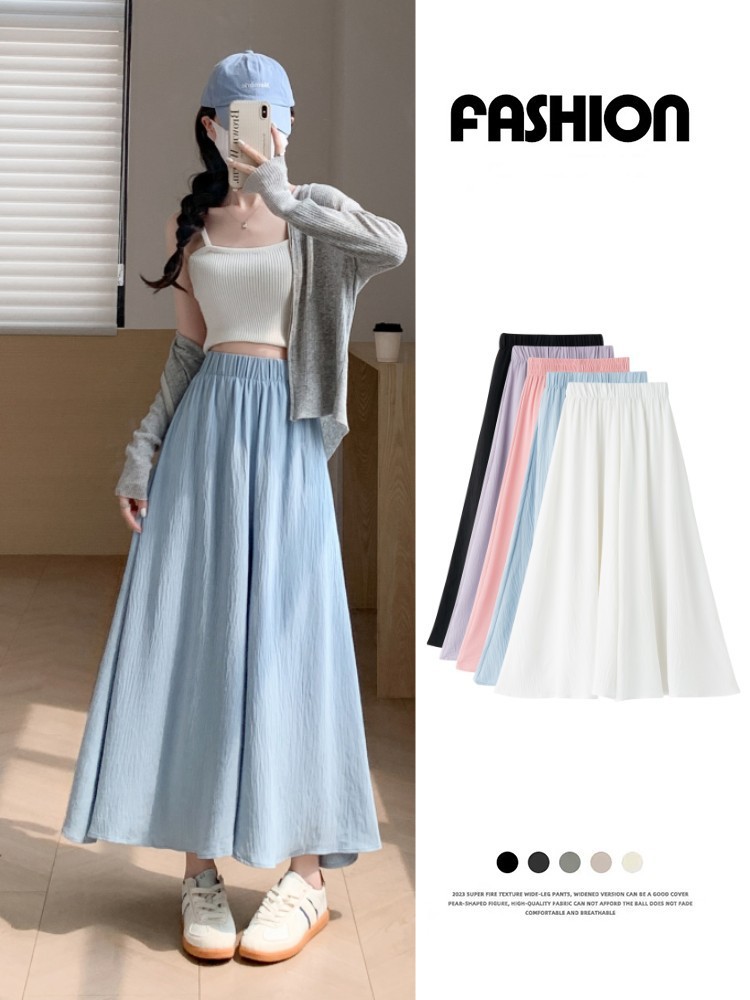 夏季薄款新款阔腿裤小个子垂感新中式飘飘百褶a字半身裙裤子