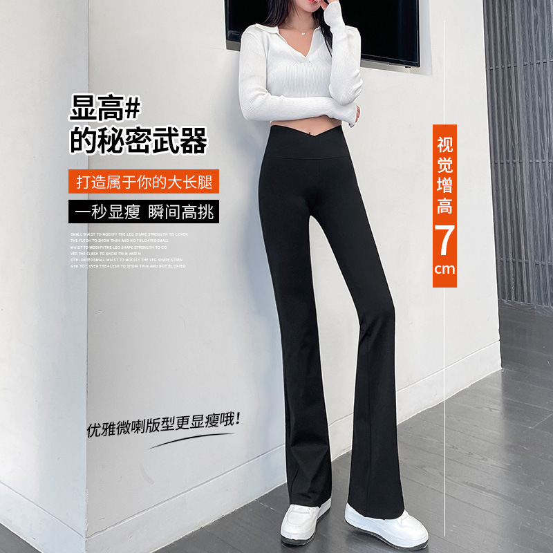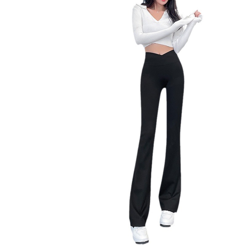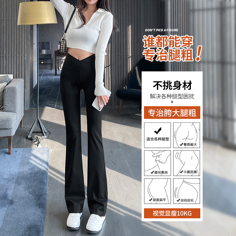 交叉腰微喇鲨鱼裤打底裤女外穿高腰提臀瑜伽阔腿喇叭裤女