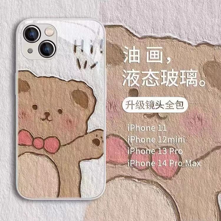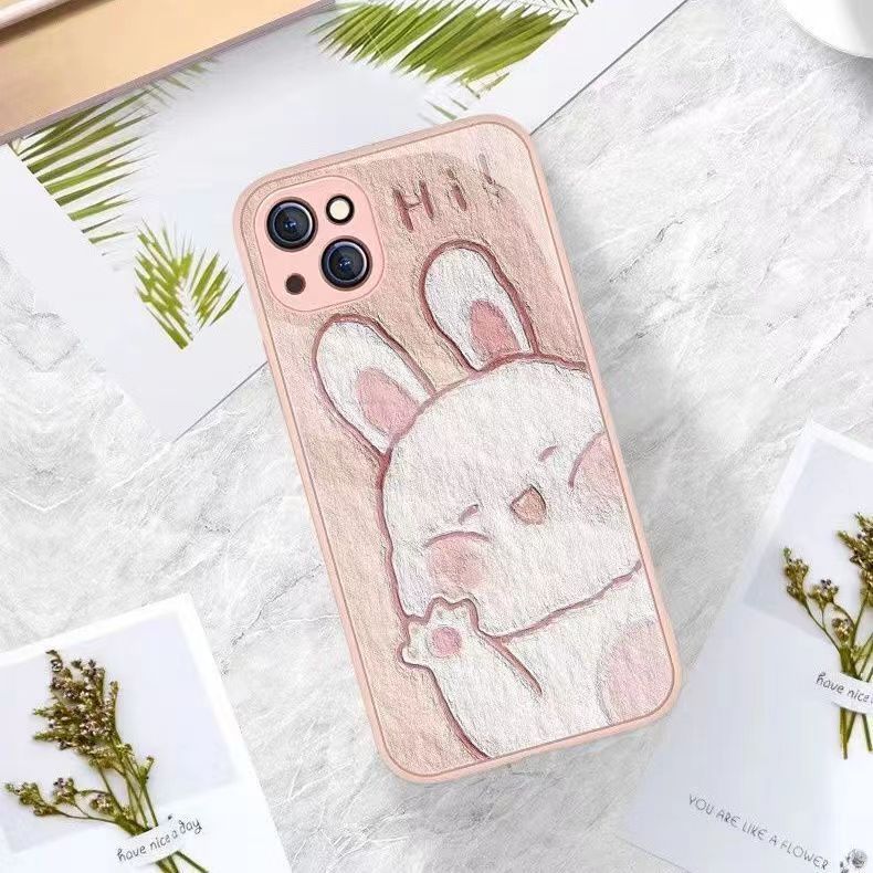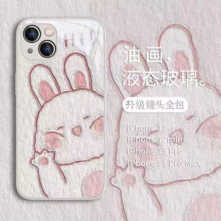 油画小兔子适用苹果14promax手机壳13/12/xr液态玻璃7p8p卡通全包