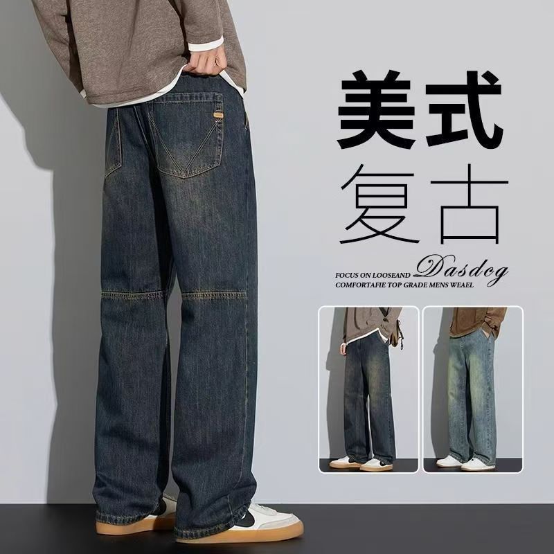 牛仔裤男2025新款春季美式宽松直筒阔腿潮牌复古休闲做旧长裤
