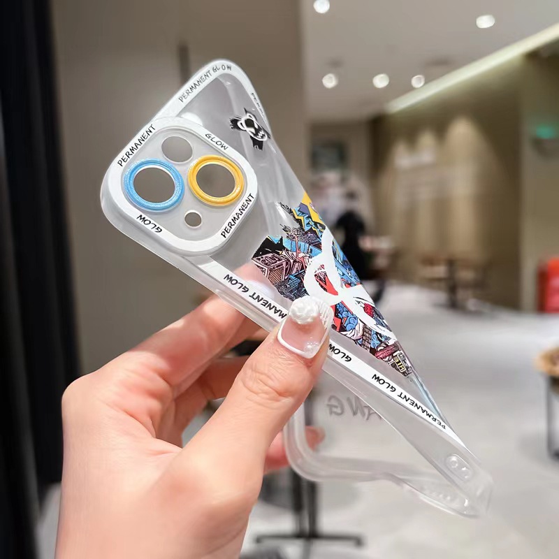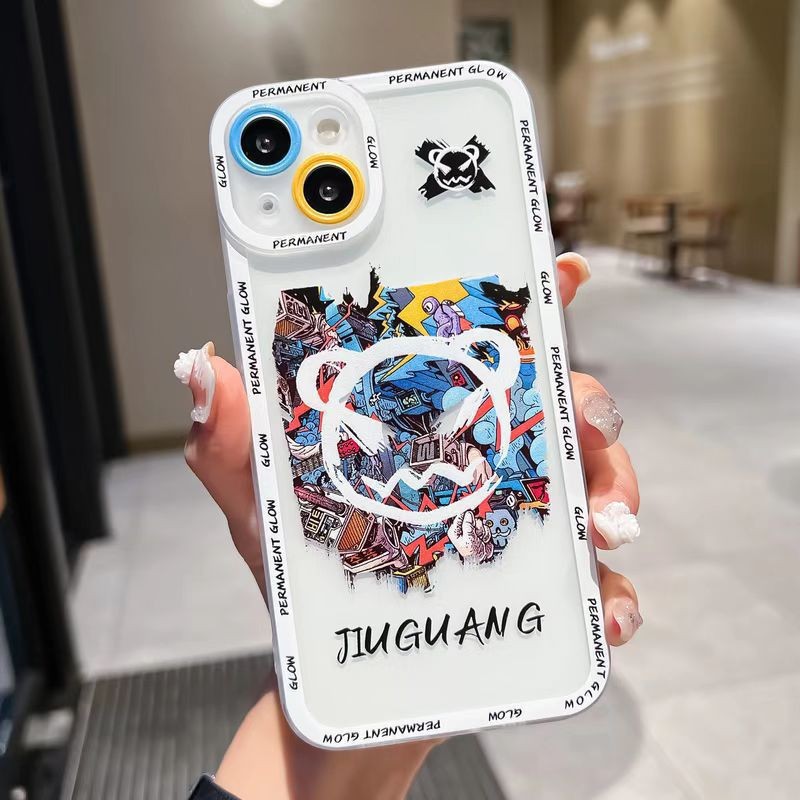 潮牌涂鸦暴力熊苹果15手机壳iphone14promax透明软胶13/12/11防摔