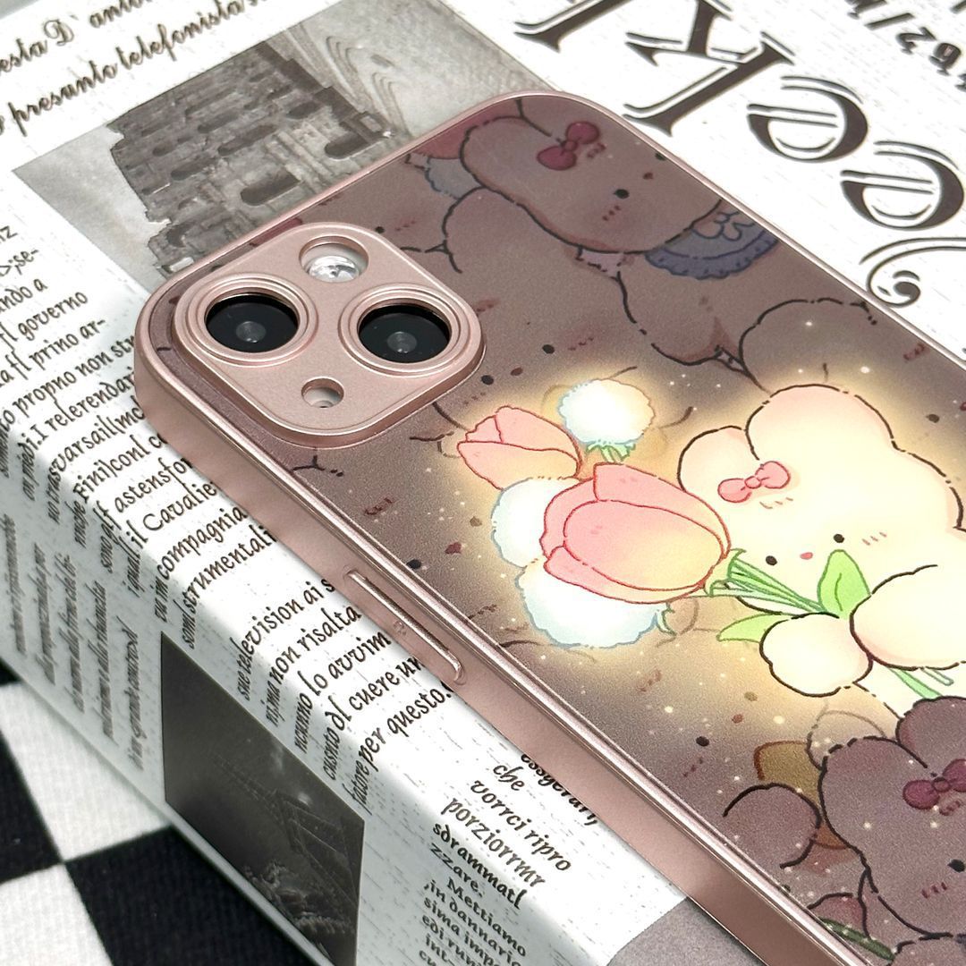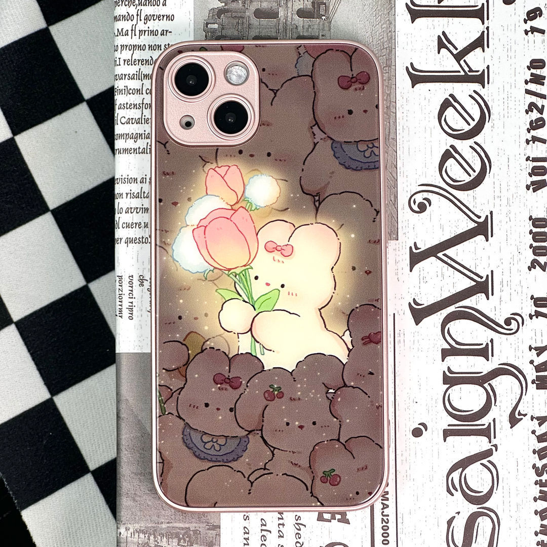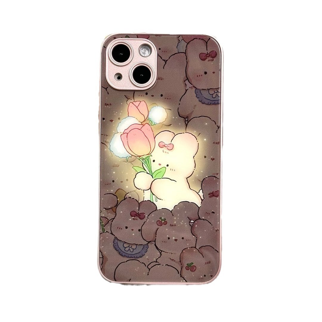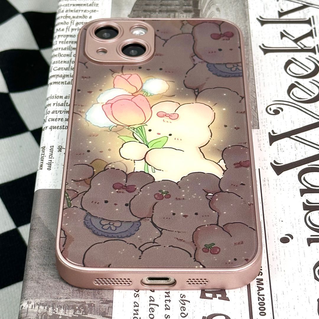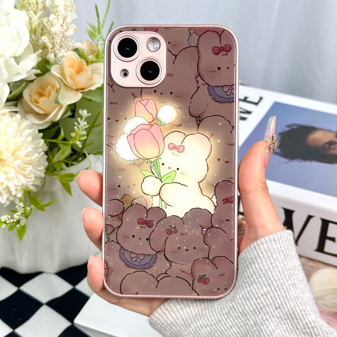 发光小兔子苹果15Promax手机壳苹果14pro/13/12液态玻璃xs/8plus