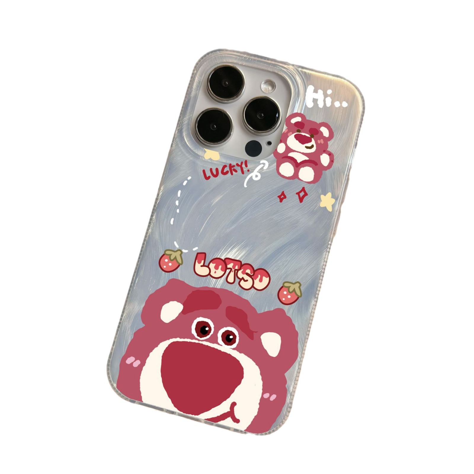 新款镭射羽纱可爱草莓熊适用苹果15手机壳iphone14promax防摔13