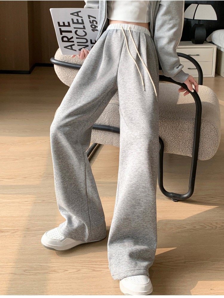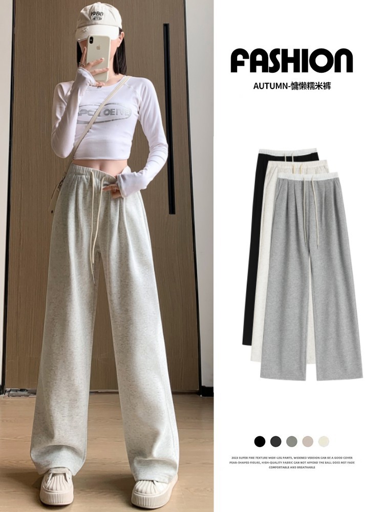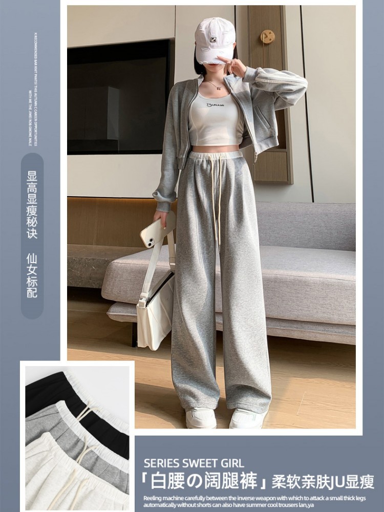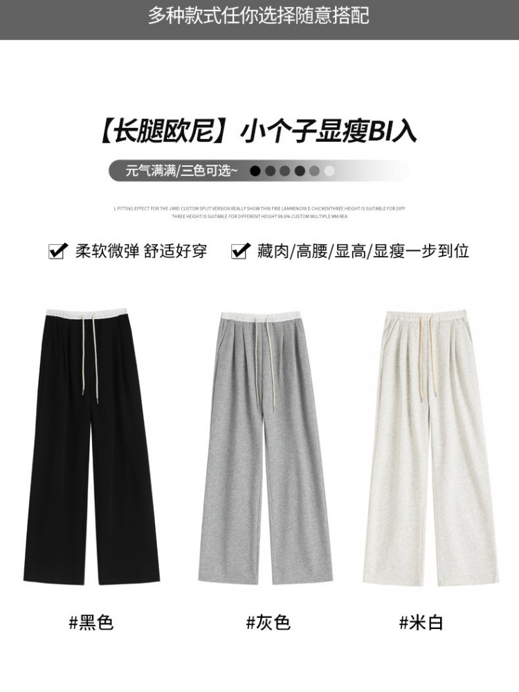 春秋季新品慵懒风阔腿裤高腰美式休闲运动卫裤垂感直筒拖地裤