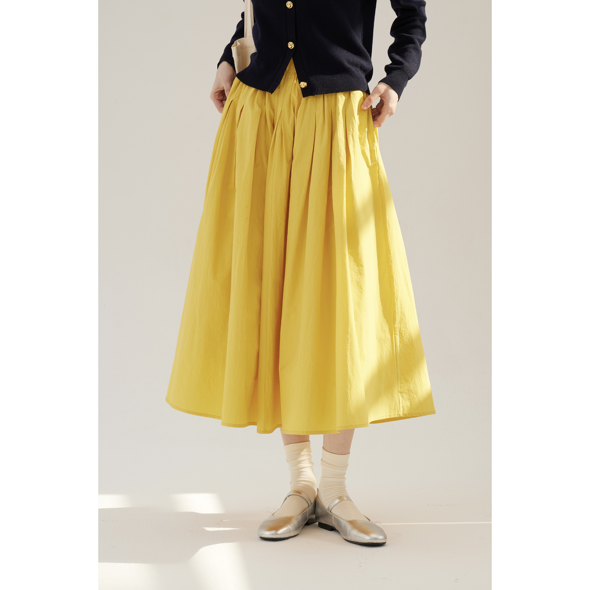 Sullenger 25春季明黄色新疆长绒棉松紧褶裥大摆伞裙