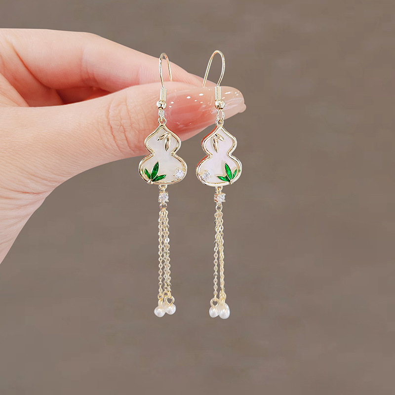 国风竹叶葫芦耳钉女新款古风流苏小众耳环新中式汉服旗袍耳饰