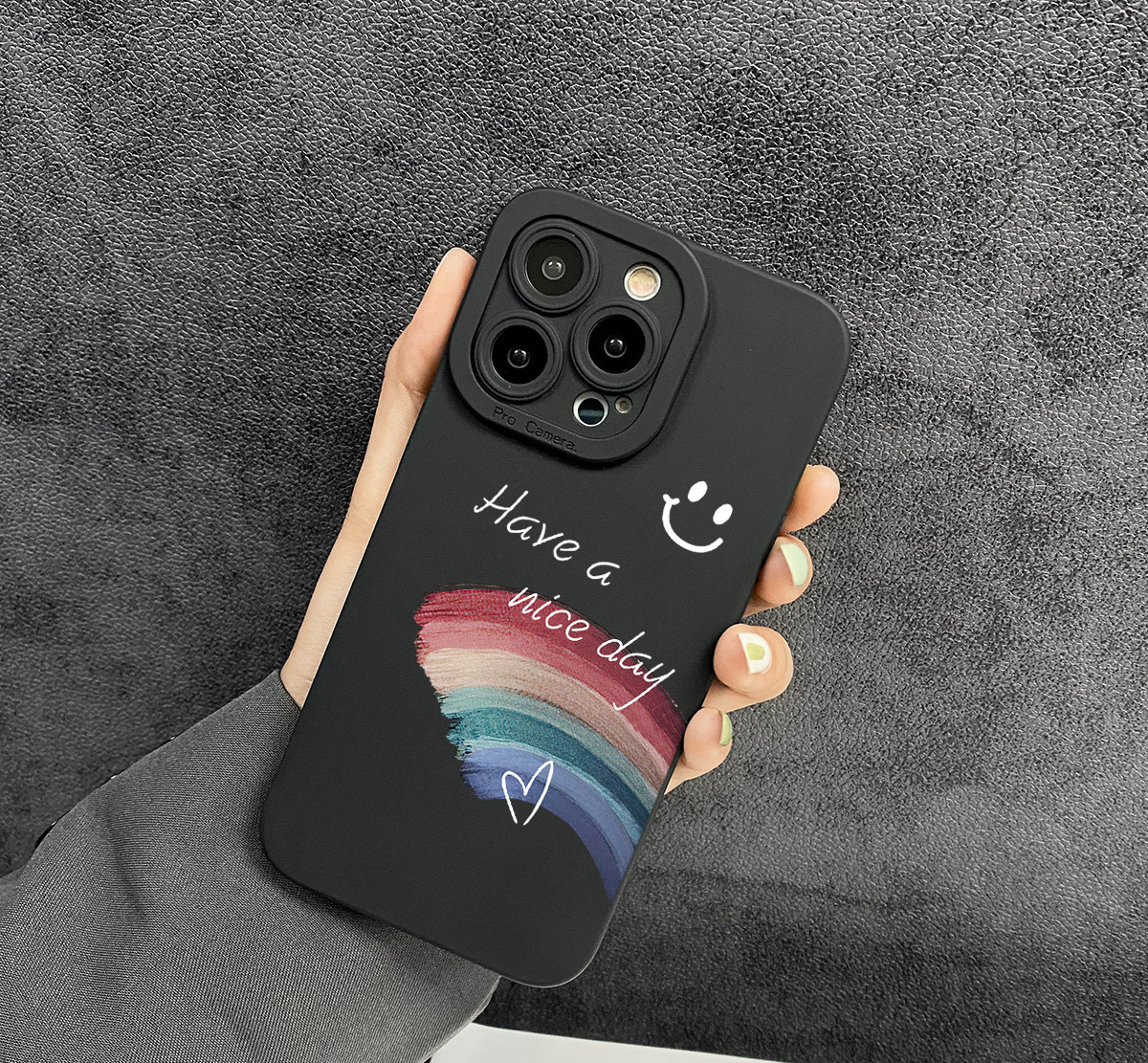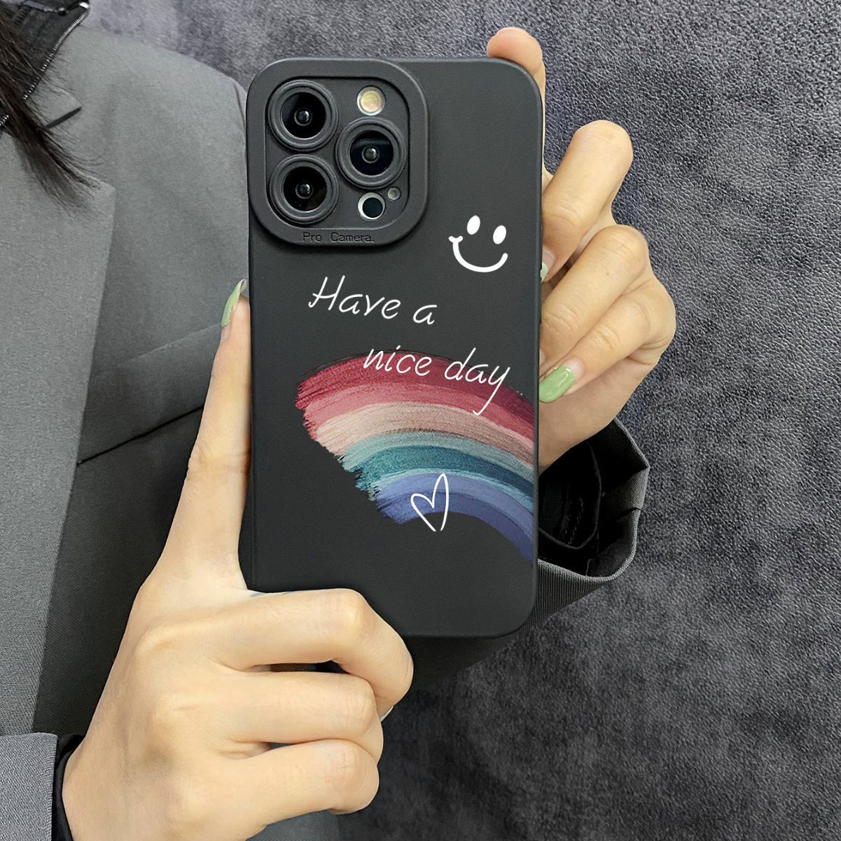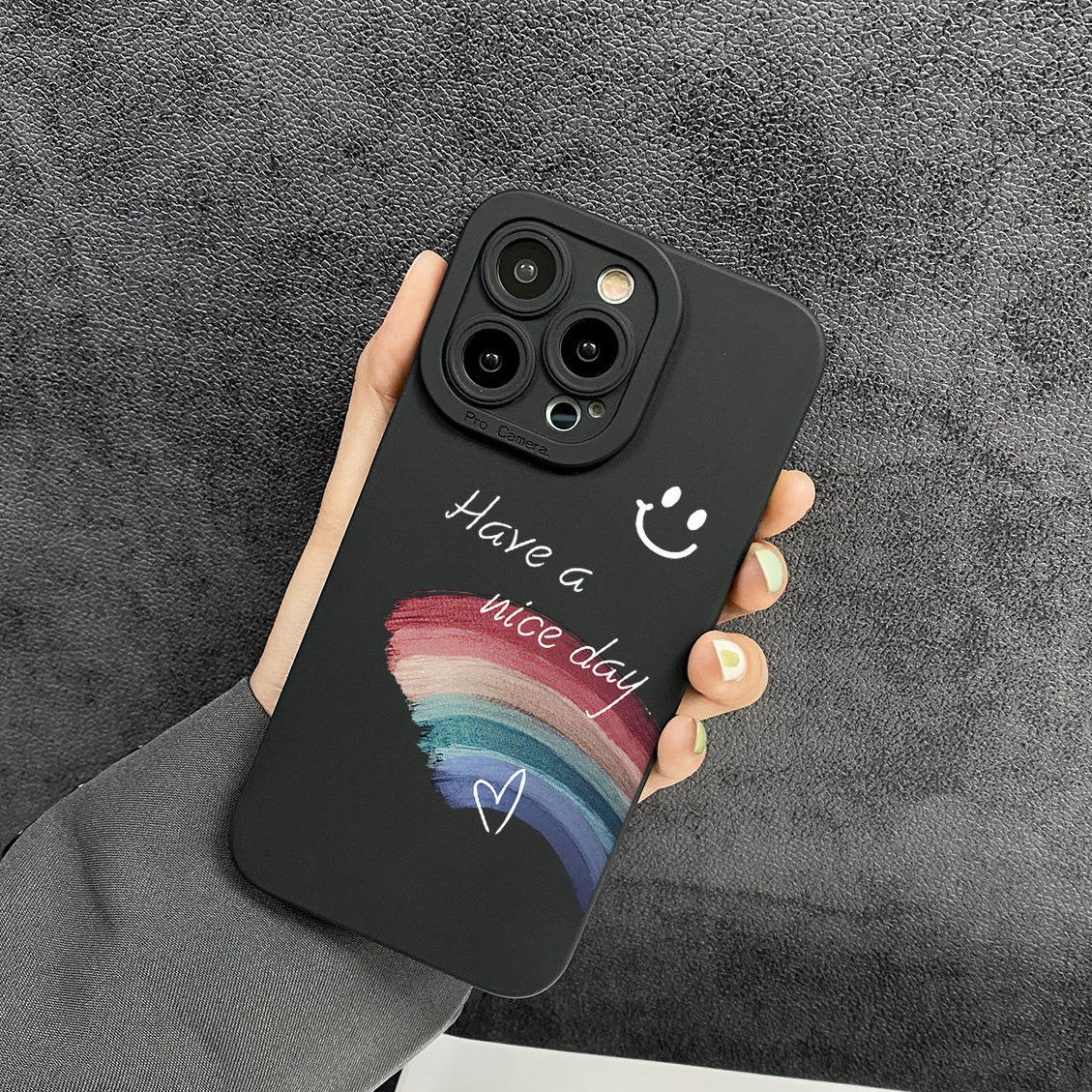 瞳眼可爱彩虹笑脸适用苹果15手机壳iphone12promax保护套11/12