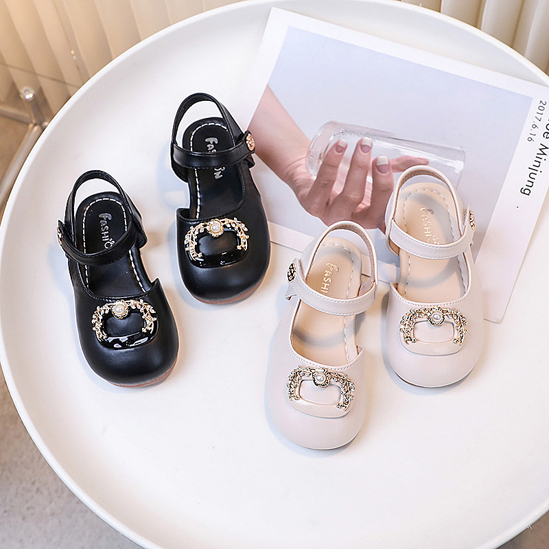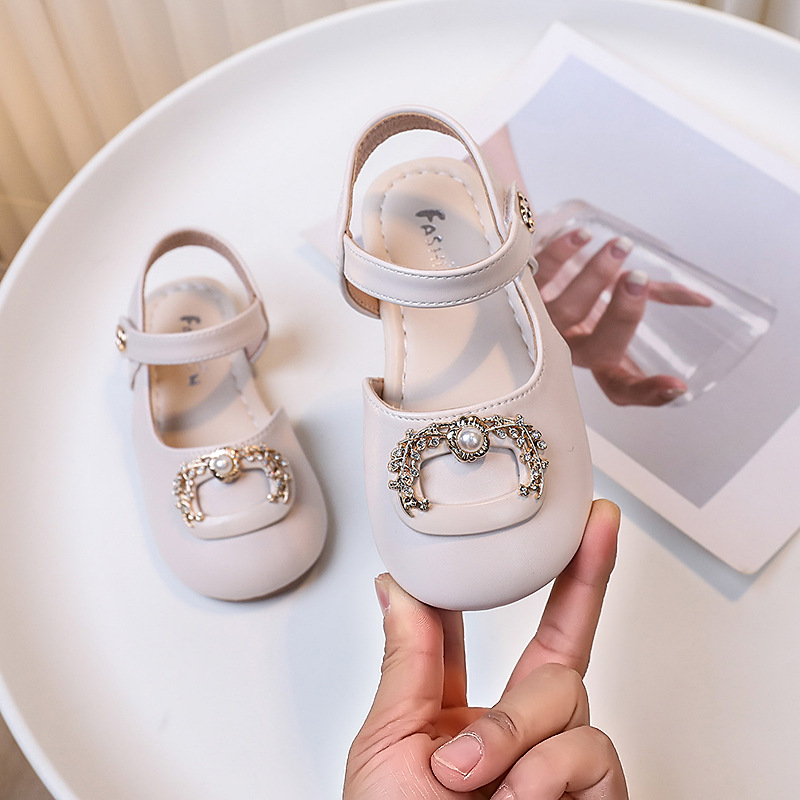 女童皮鞋春夏季新款水钻软底鞋子女宝宝小童包头儿童公主鞋