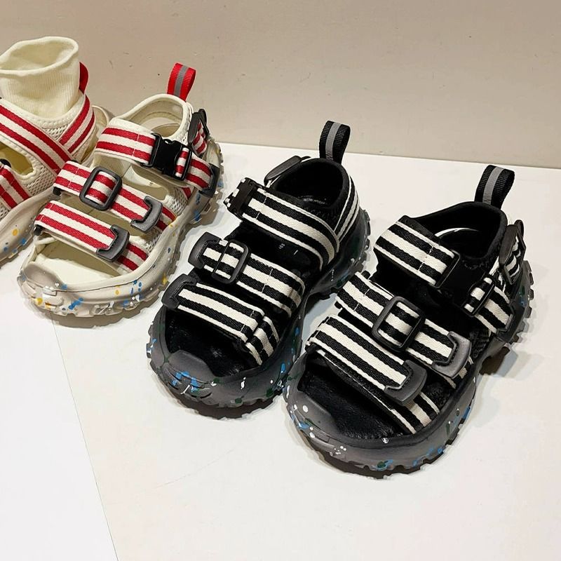 露趾凉鞋男女儿童做旧喷漆夏季新款帅气防滑学生版运动鞋时尚