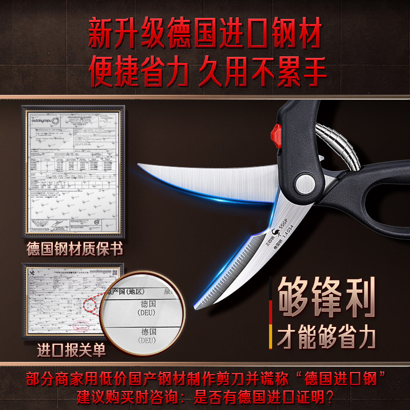 SSGP 厨房剪刀家用多功能不锈钢强力剪子 骨头剪肉杀鱼专用鸡骨剪
