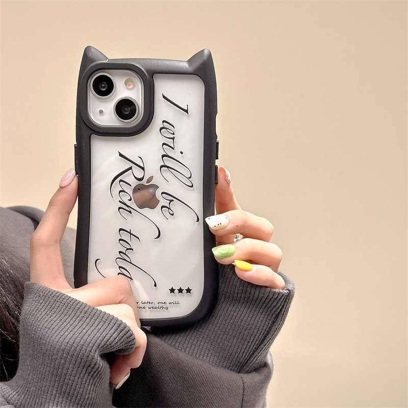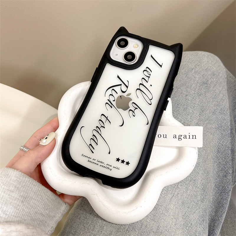 趣味猫耳英文15pro苹果13手机壳iphone12全包硬壳13pro max适用14