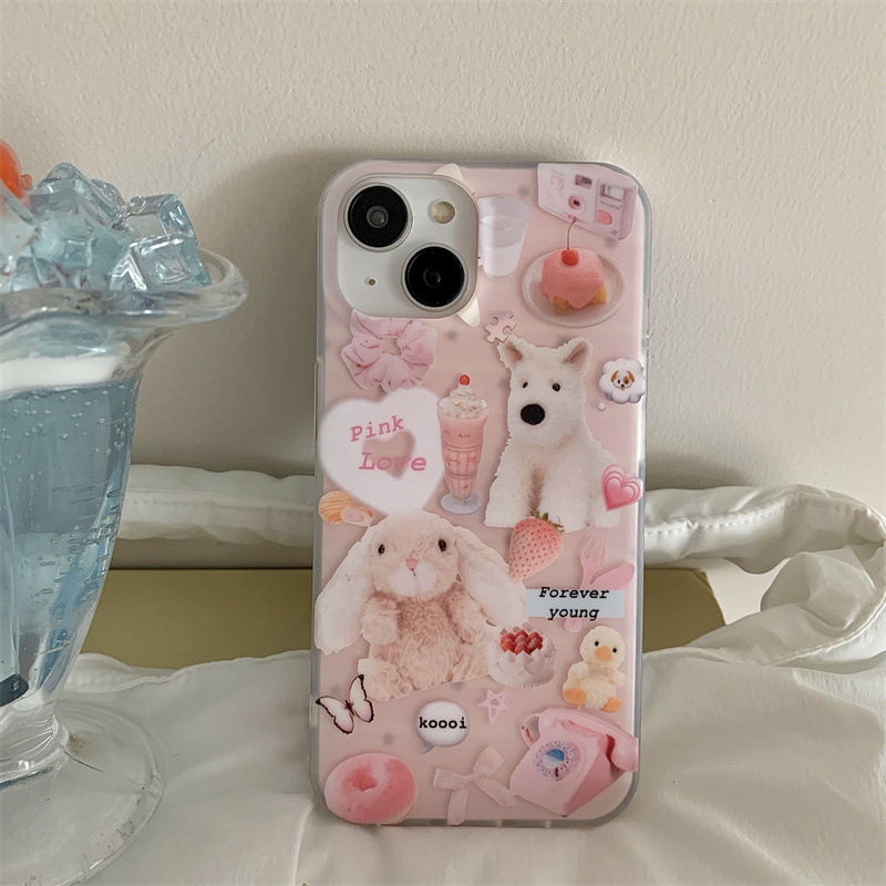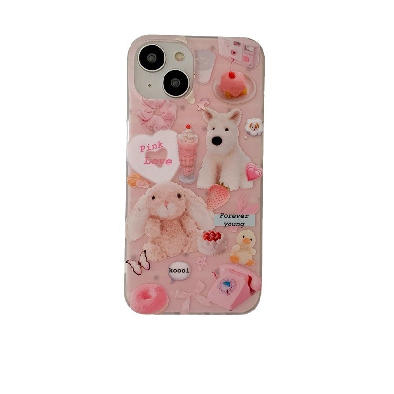 粉色卡通贴图15pro苹果13手机壳iphone12全包硬壳13pro max适用14