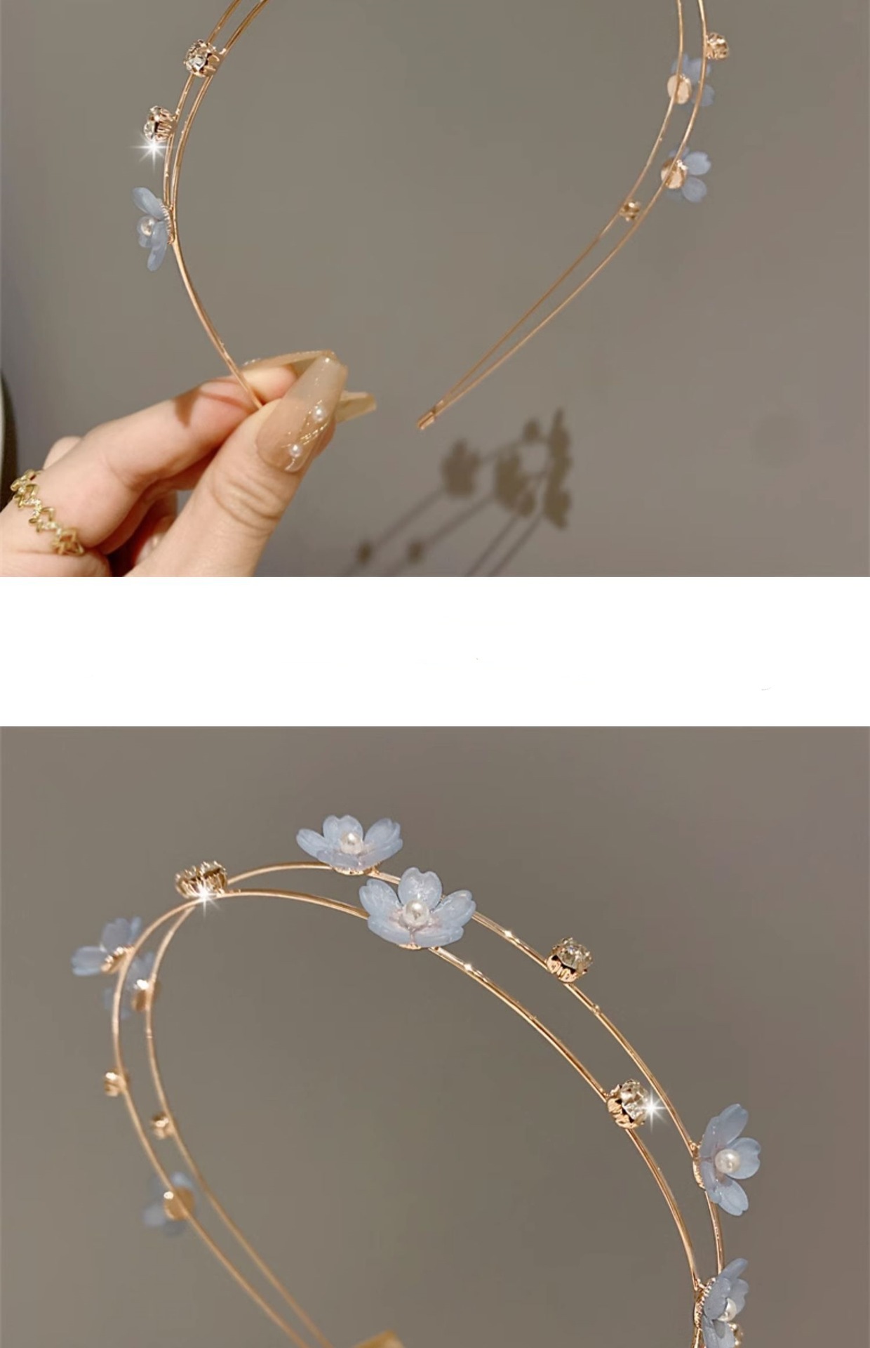 发箍女简约韩国气质外出细款花朵水钻双层发卡夏季新款精致发饰