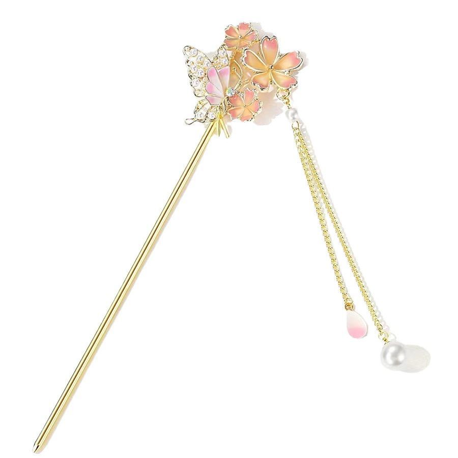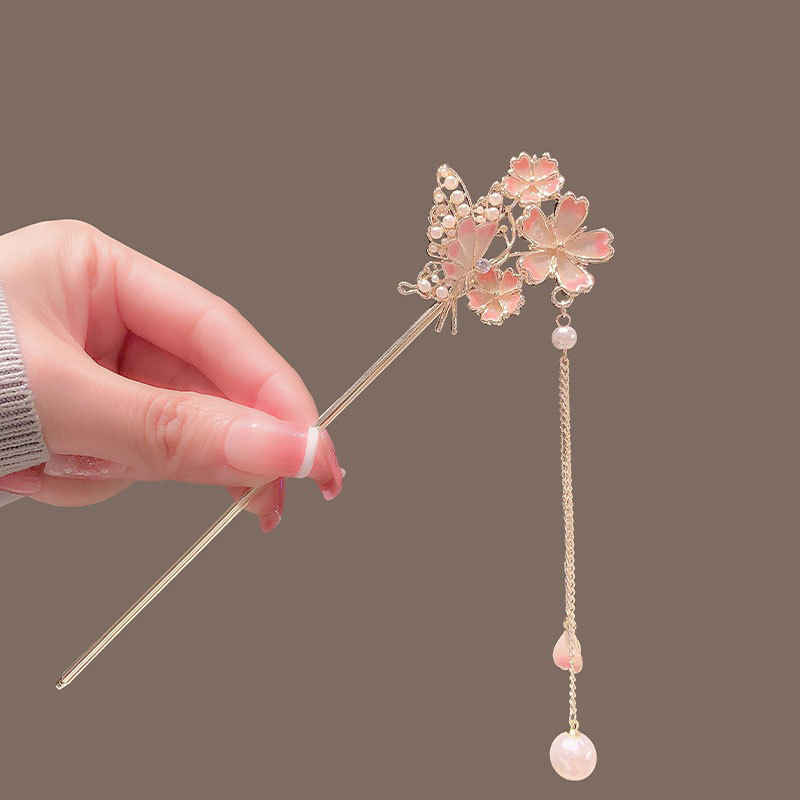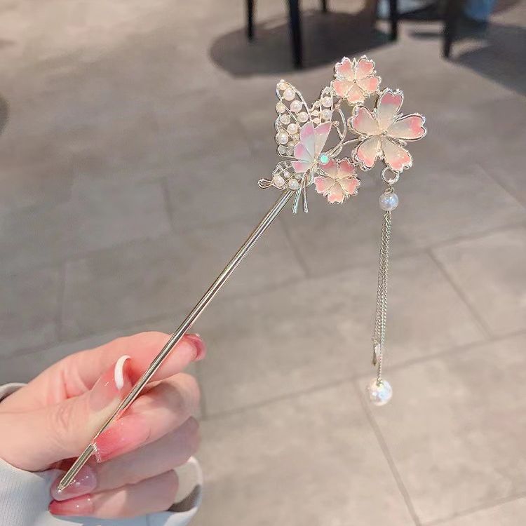 中国风夏天蝴蝶发簪流苏花朵簪子古风汉服发饰高级感盘发头饰发钗
