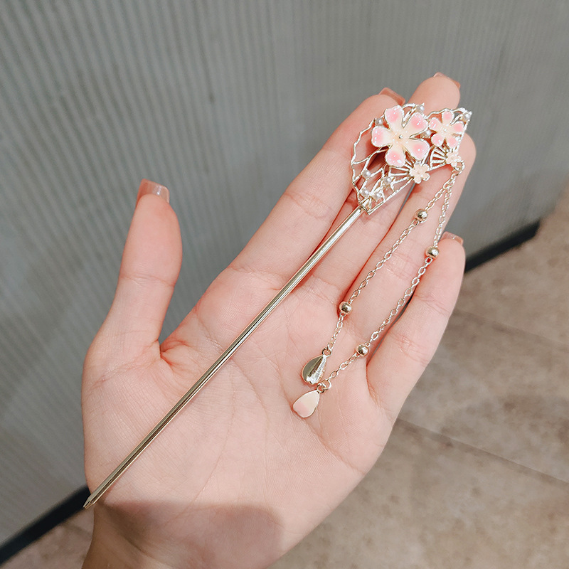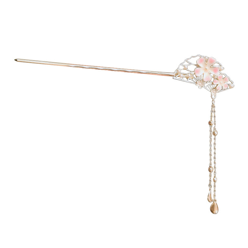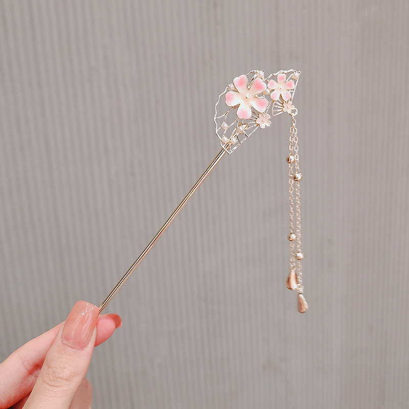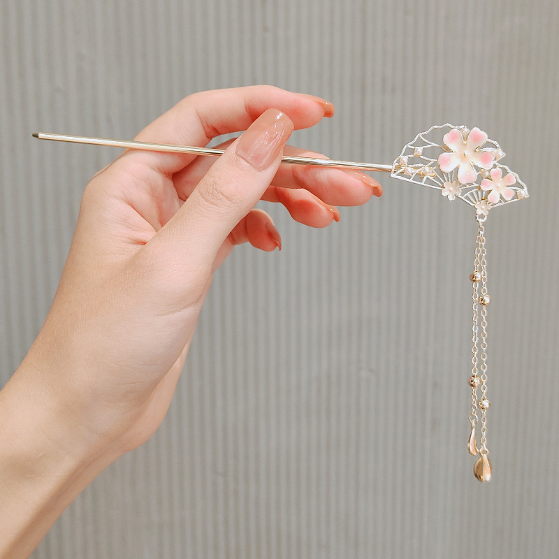 扇子樱花古风发簪高级感女新款夏季气质发钗流苏汉服步摇簪子