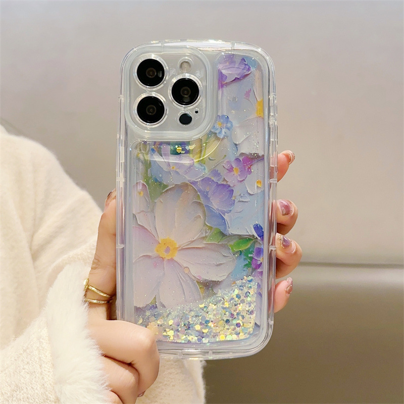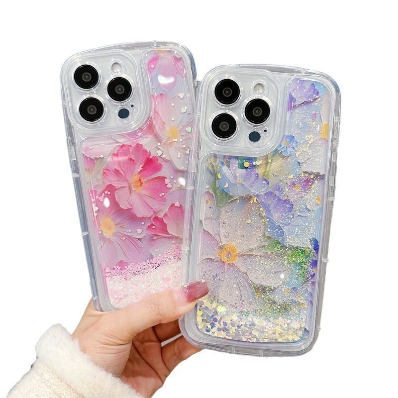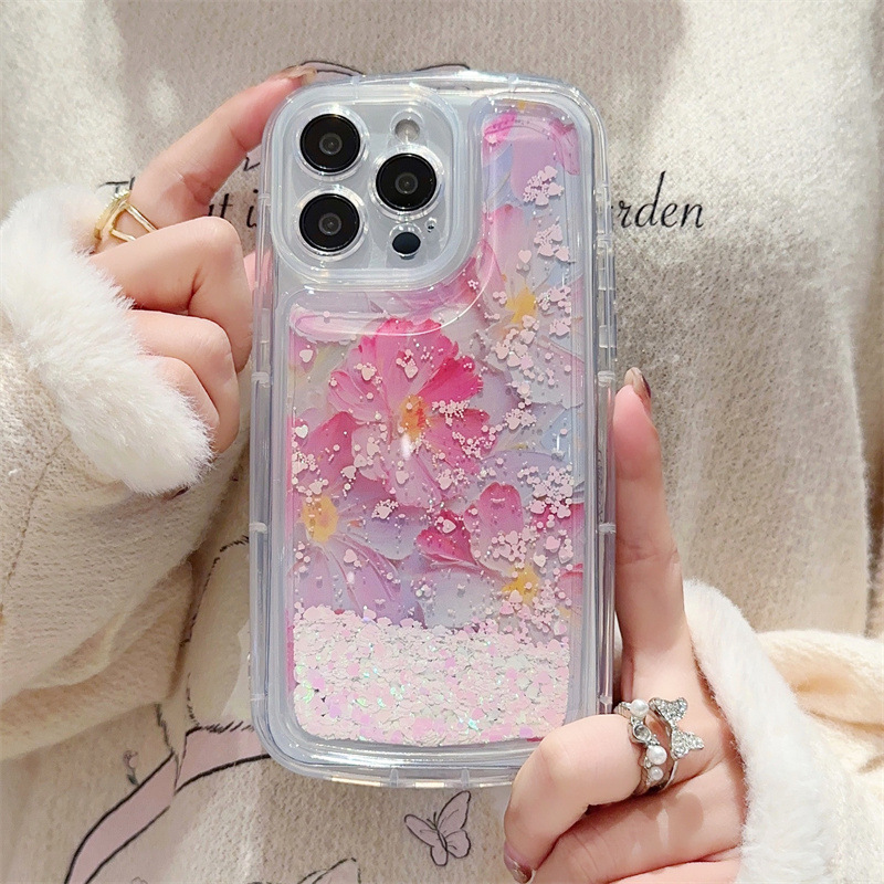 流沙清新花朵15pro苹果13手机壳iphone12华为mato60pro硬壳适用14
