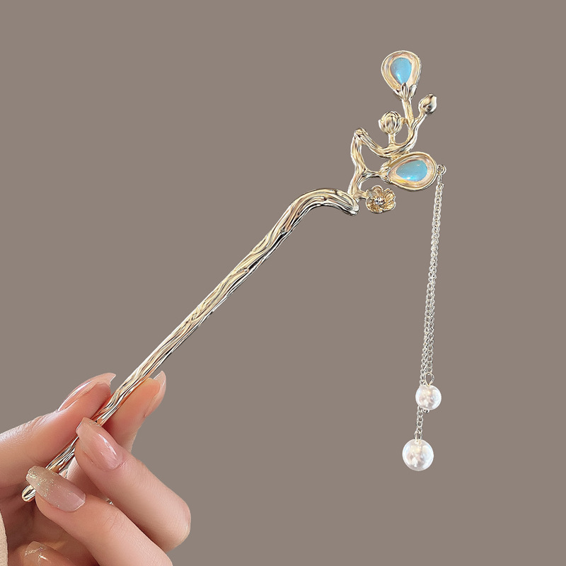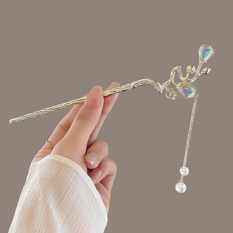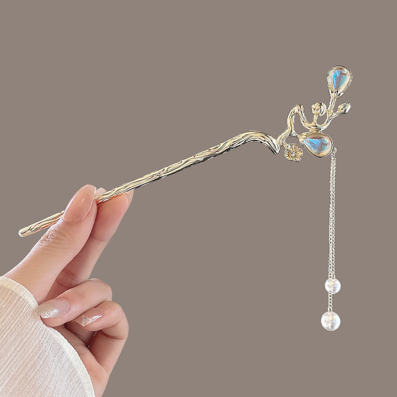 新中式发饰女星空月光石发簪高级感头饰中性简约发钗个性盘发簪子