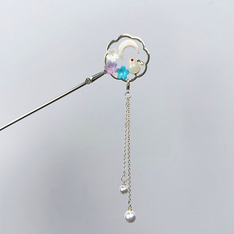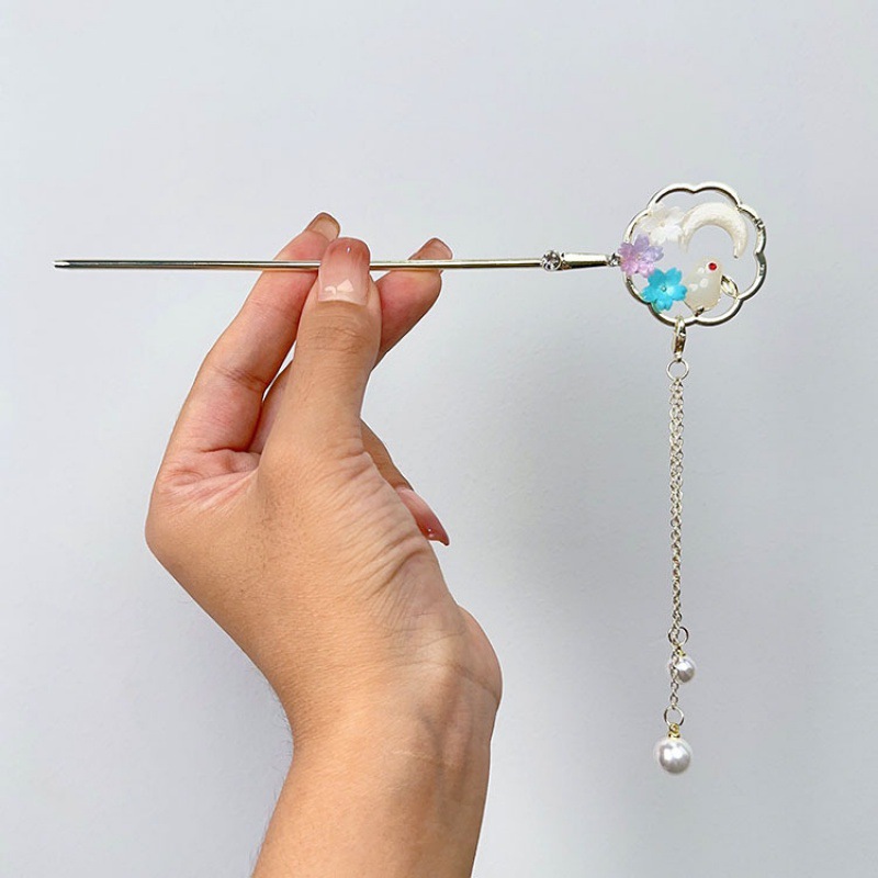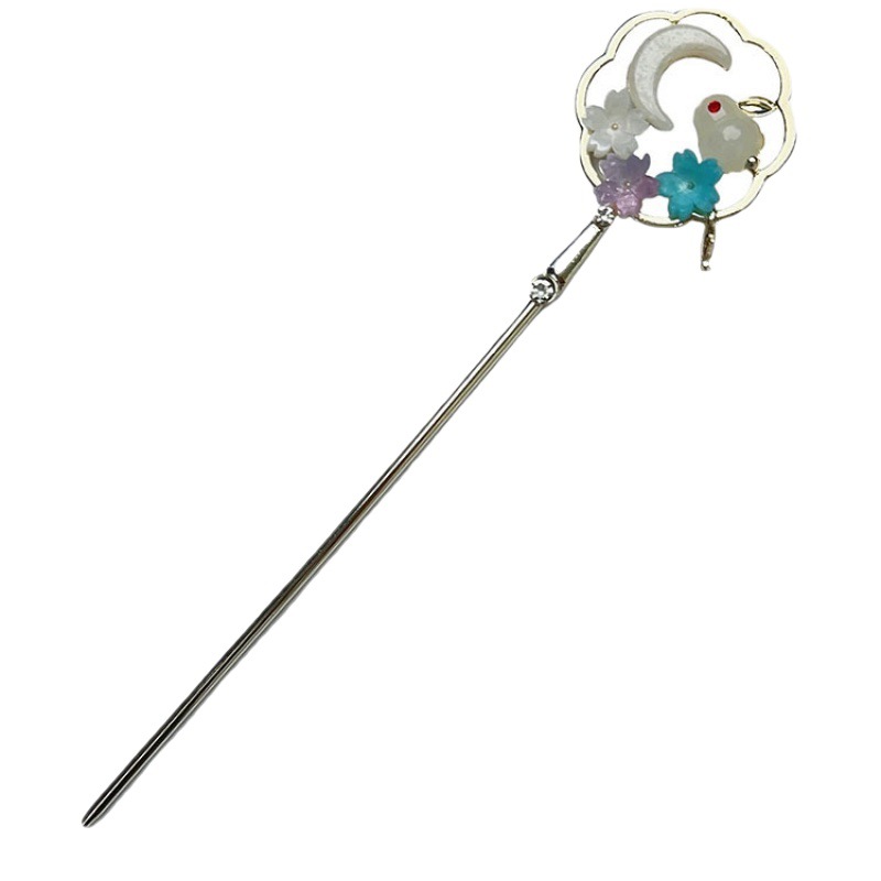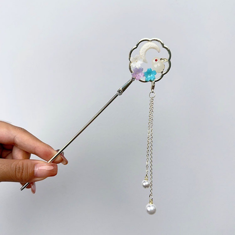 玉兔望月花朵流苏步摇发簪新中式盘发簪子古风旗袍汉服发钗头饰