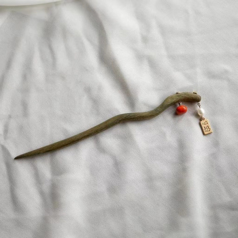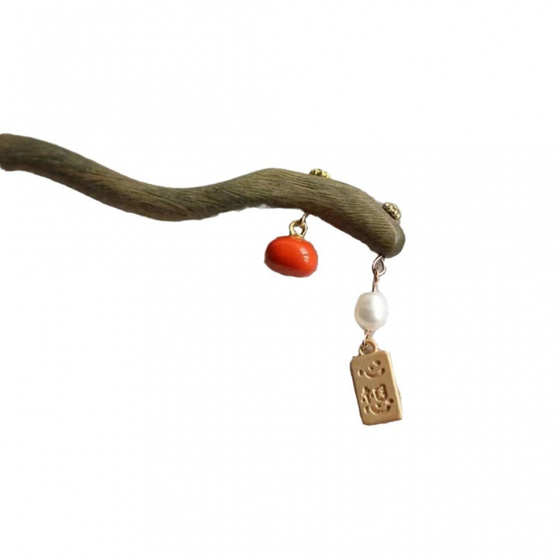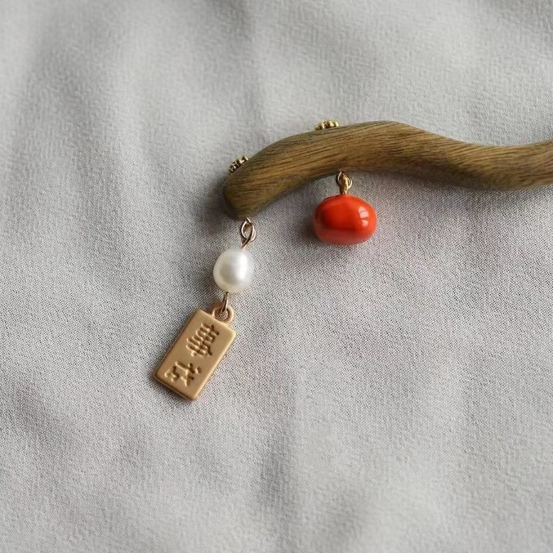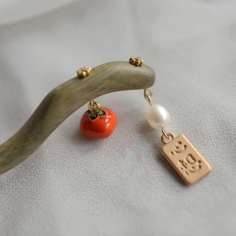 【柿成】绿檀木古风高级发簪盘发心想事成柿子珍珠汉服发饰喜庆