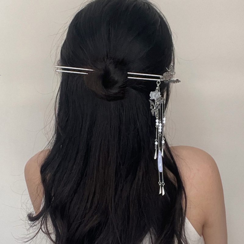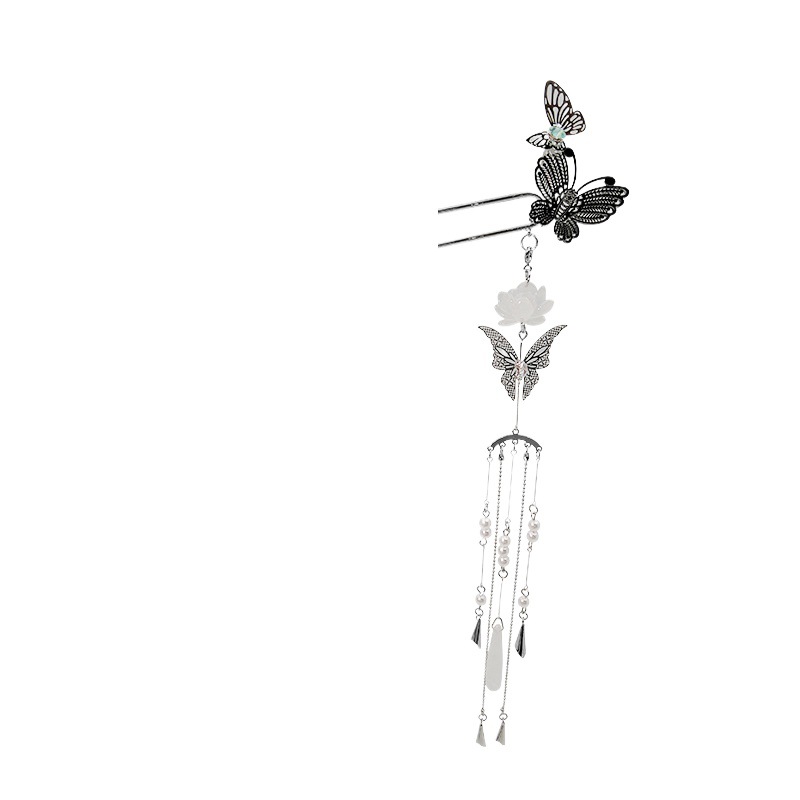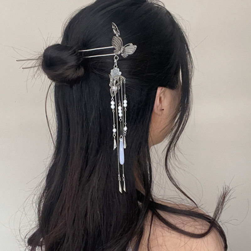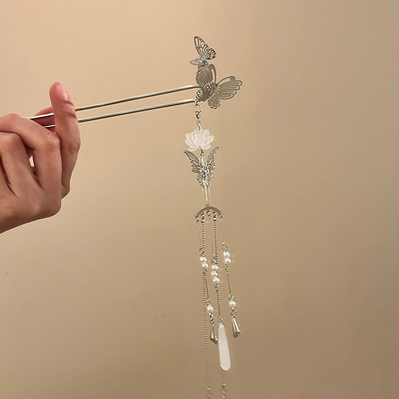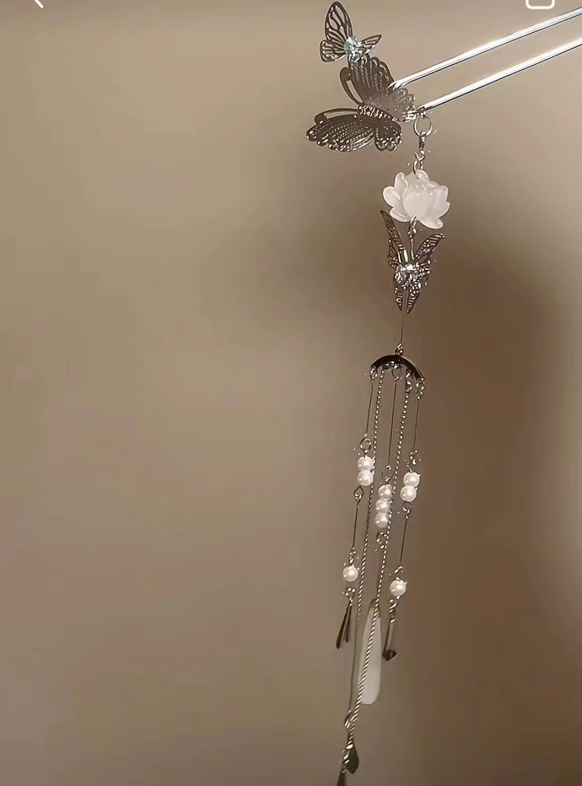 新中式汉服风铃灵动蝴蝶发簪流苏简约时尚气质新中式古风银色发饰