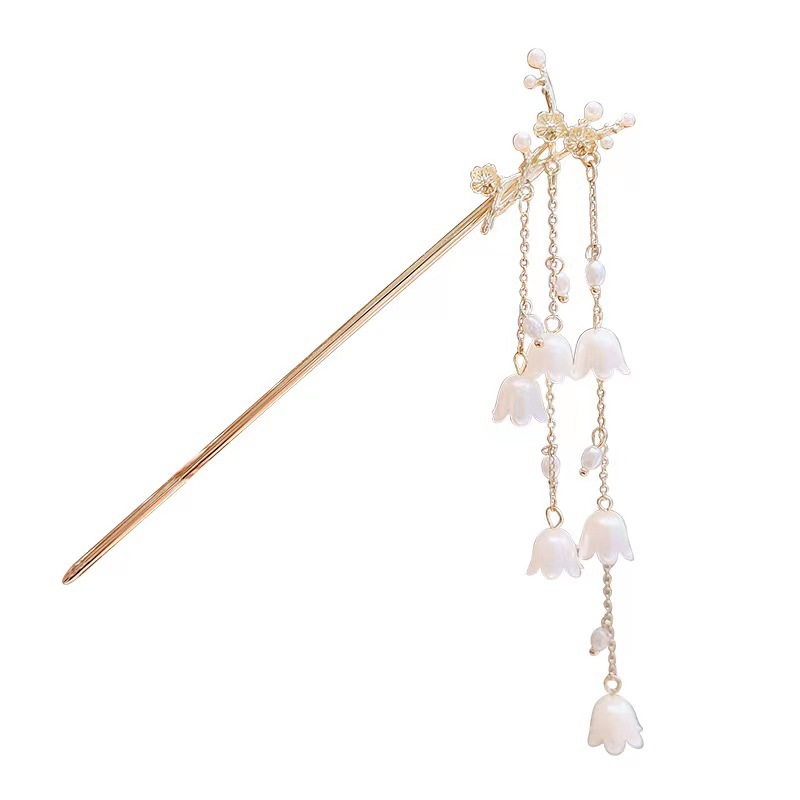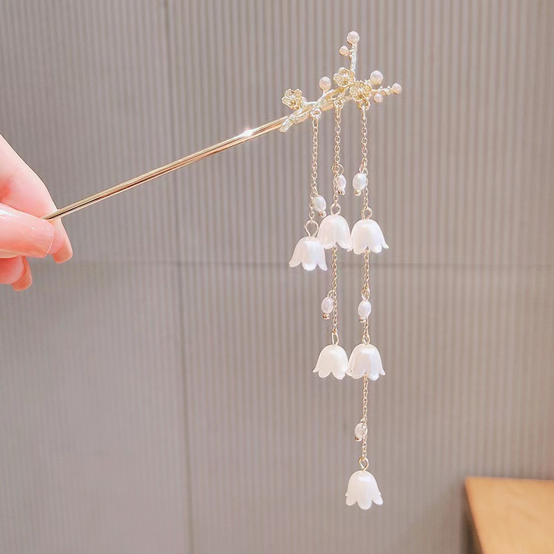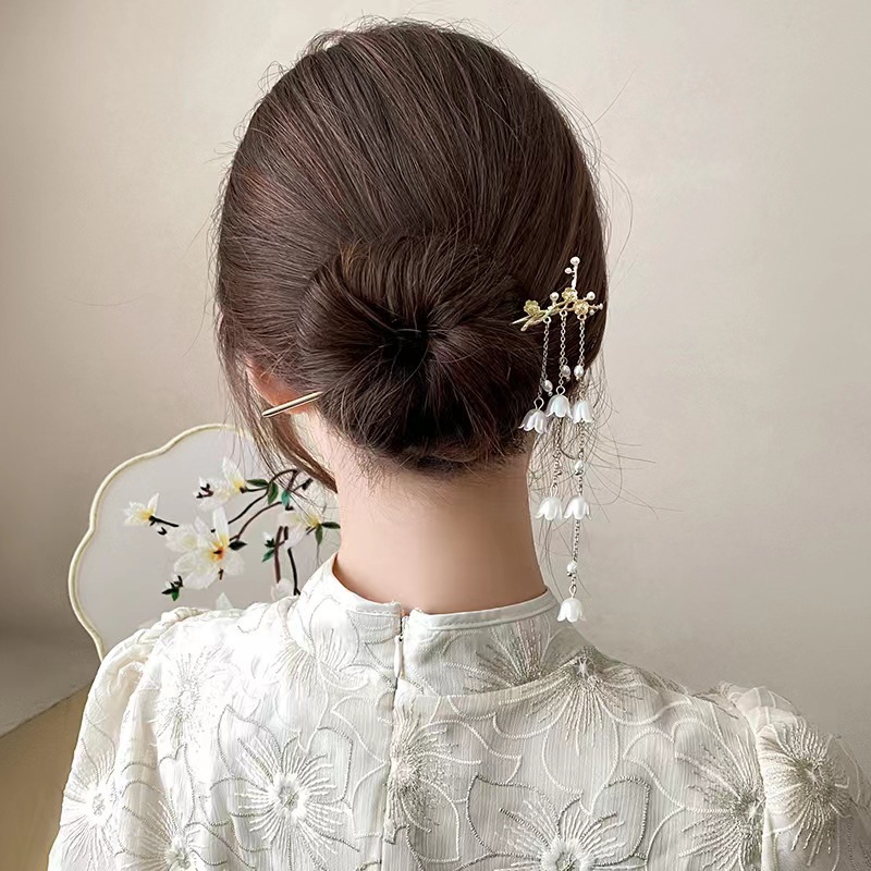 新中式铃兰花流苏发簪古风步摇簪子女汉服旗袍盘发高级感发钗头饰