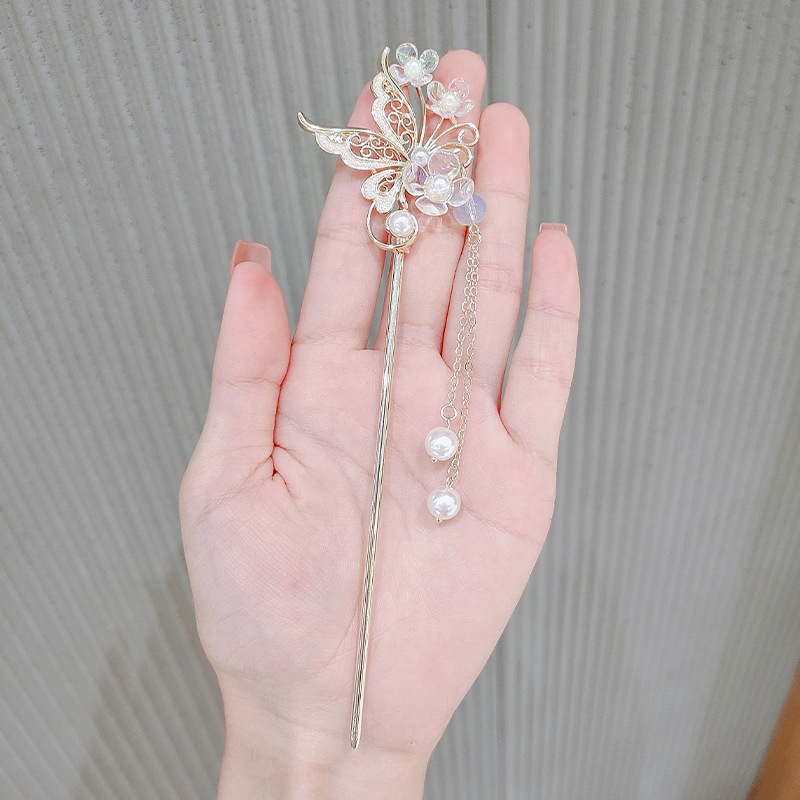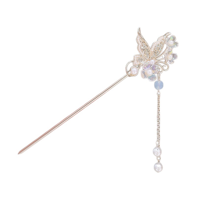 蝴蝶气质古风步摇发簪汉服古装头饰高级感发钗女中式盘发流苏簪子