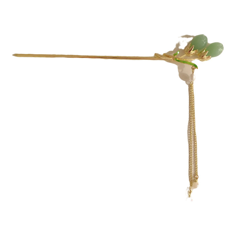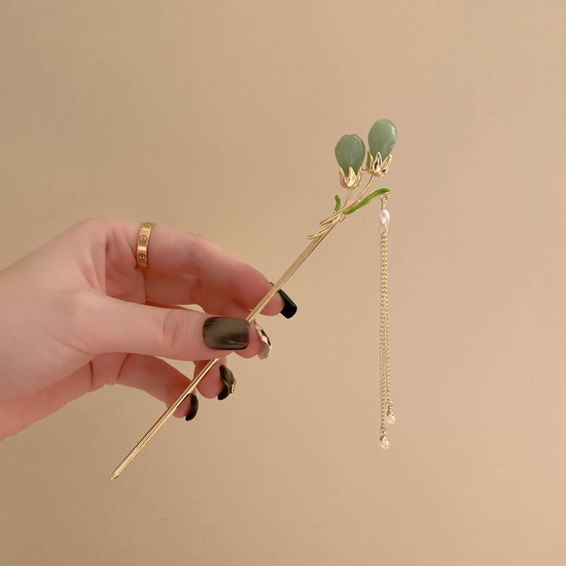 ins新中式青冻色花朵簪子流苏步摇发簪古风高级感古典旗袍盘发钗