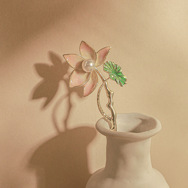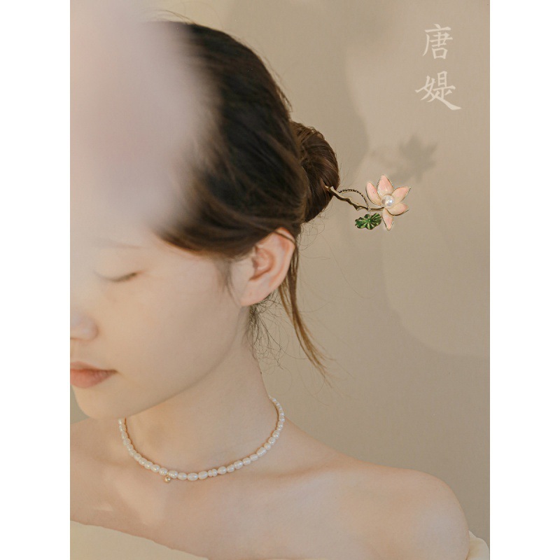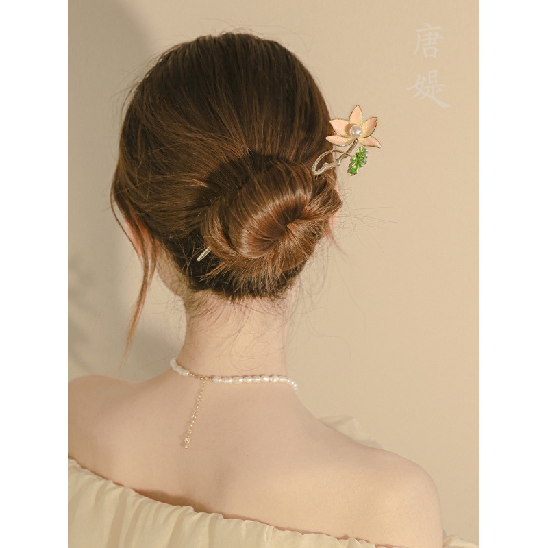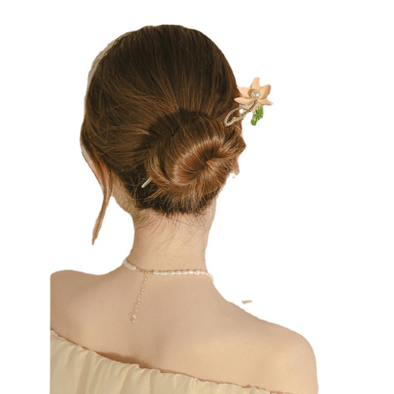 复古国风莲花发簪后脑勺精致盘发簪子女古风汉服旗袍配饰头饰