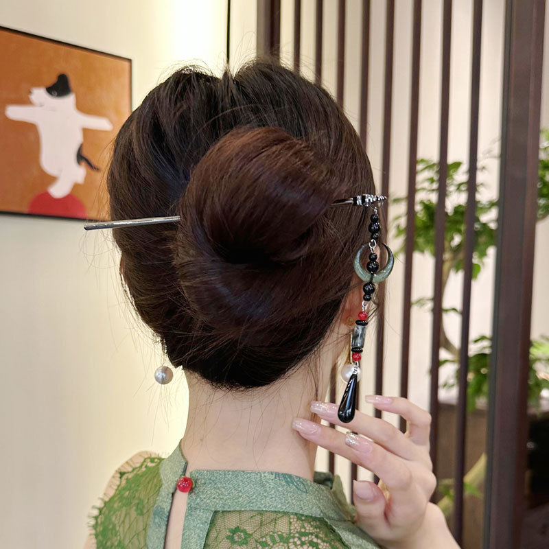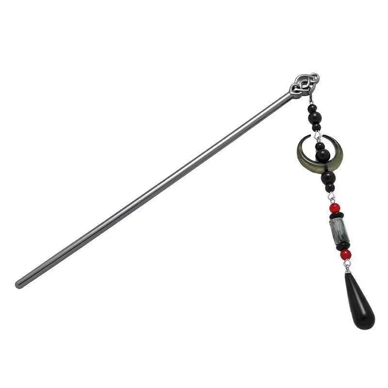 苍月系列黑色发簪原创新中式国风辣妹月亮发饰小众暗黑冷淡风