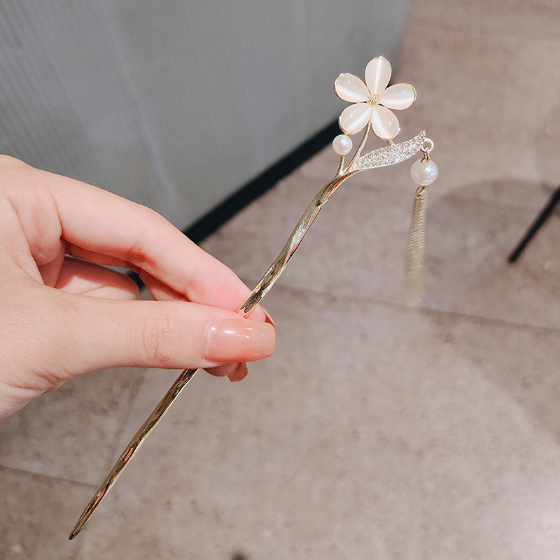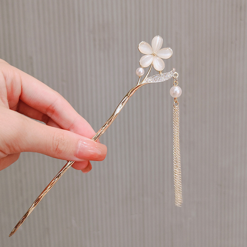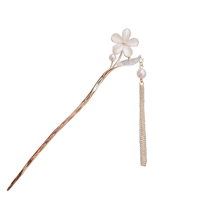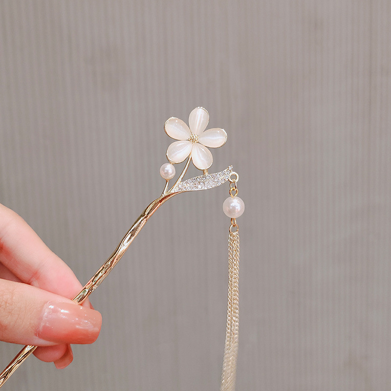 气质精致玉兰花流苏发簪简约现代盘发步摇簪子女古风旗袍汉服头饰