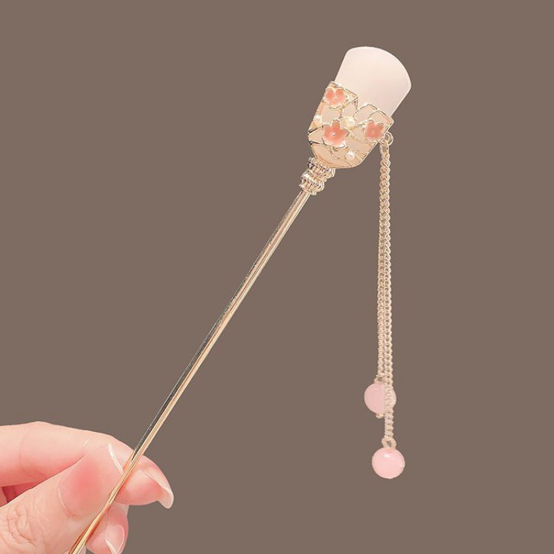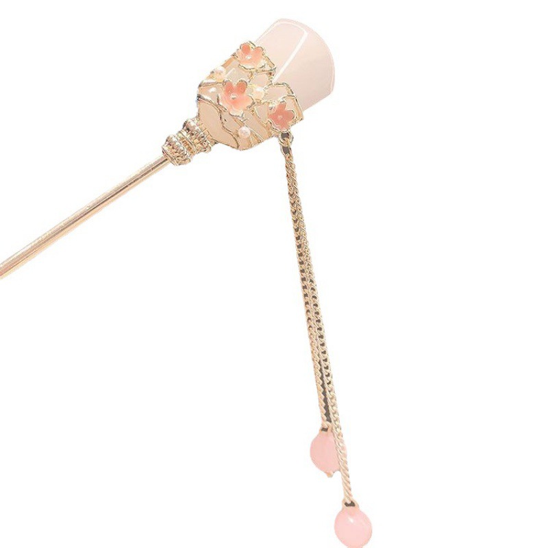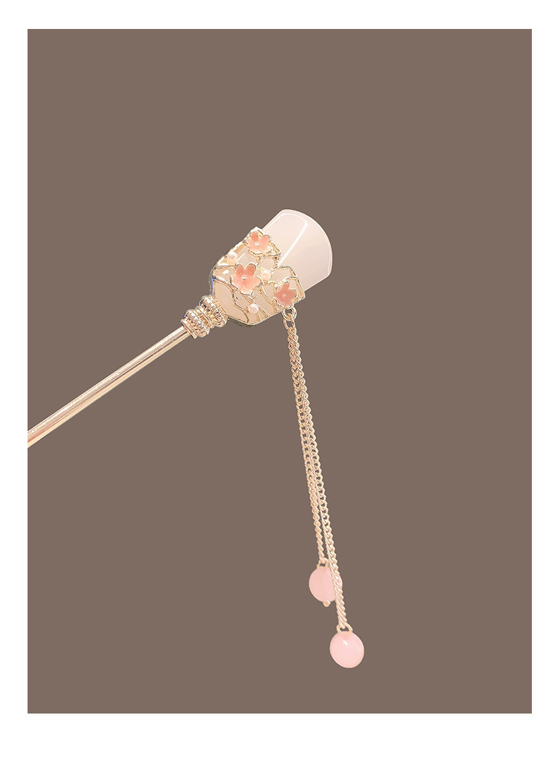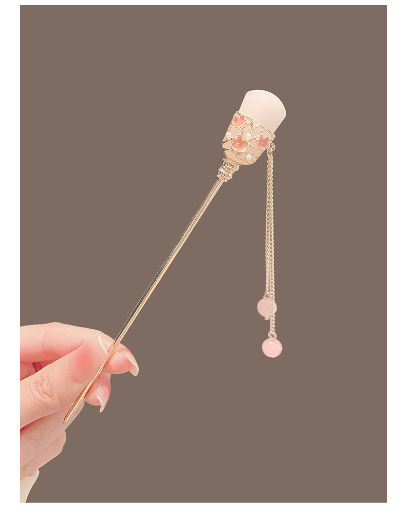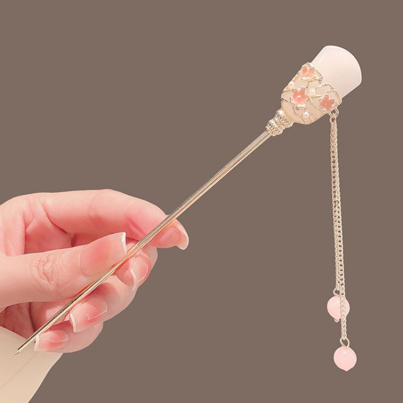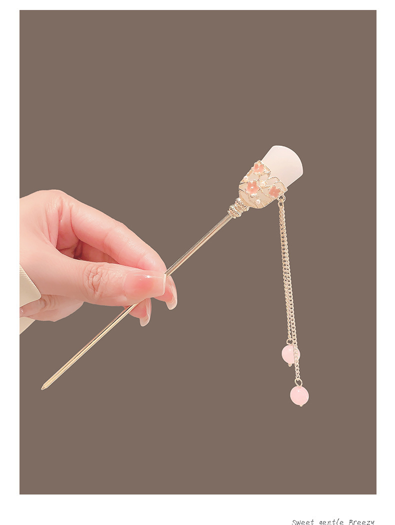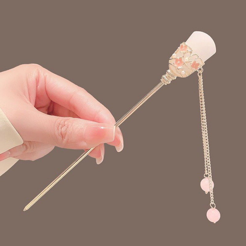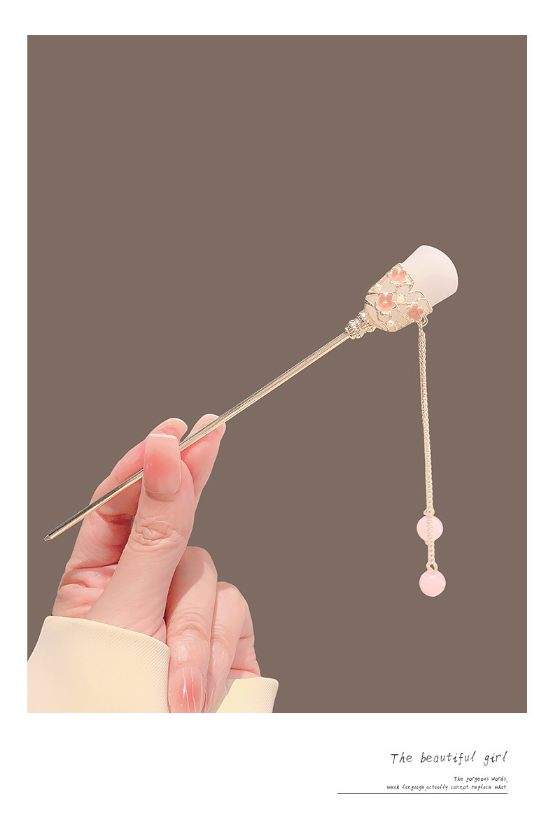 新中式白玉花朵发簪现代发饰森系仙美旗袍古风新款长流苏簪子