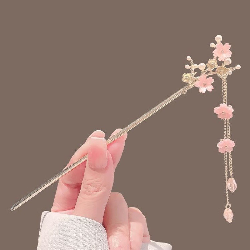 发簪汉服古风簪子桃花发饰气质流苏步摇简约头饰桃花发钗盘发高级