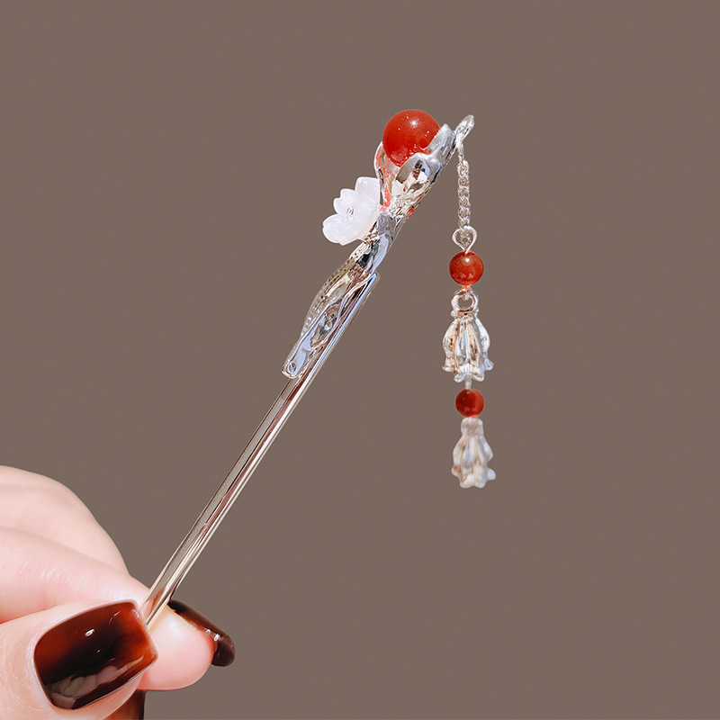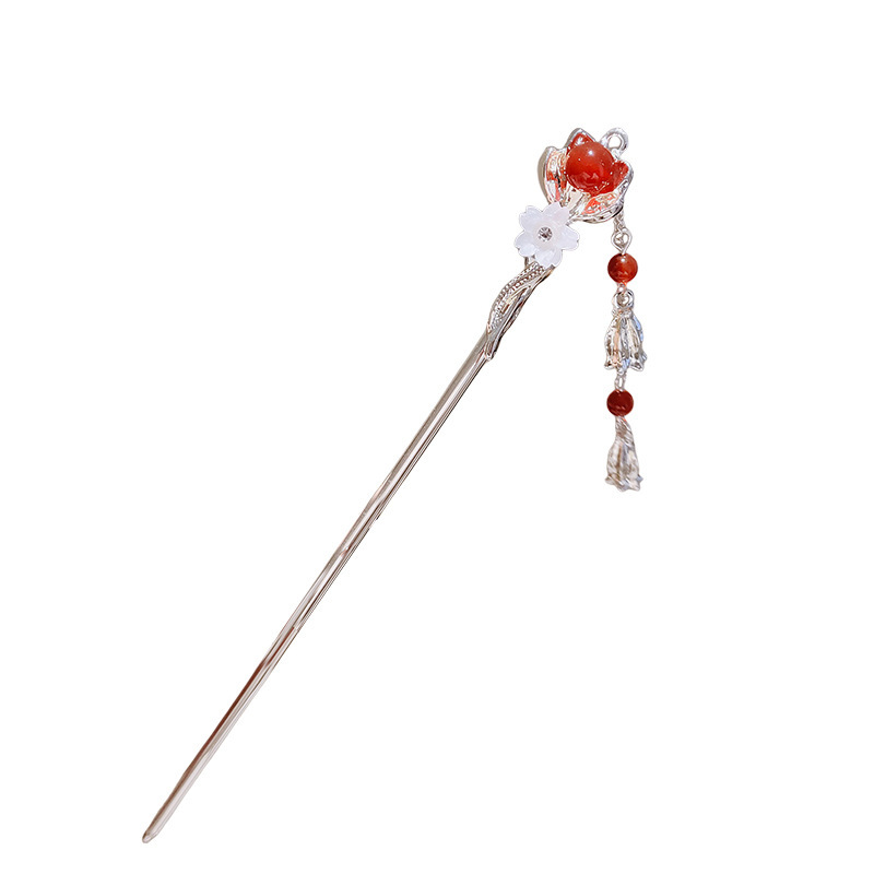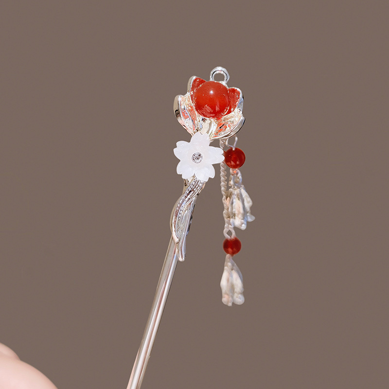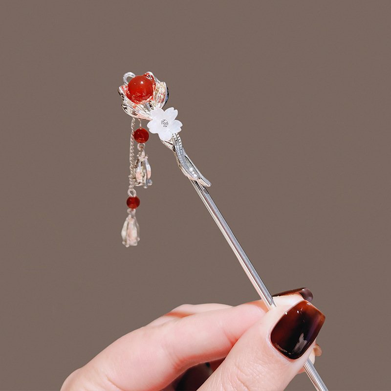 樱花相思红豆流苏发簪女高级感发钗新中式后脑勺盘发簪子古风步摇