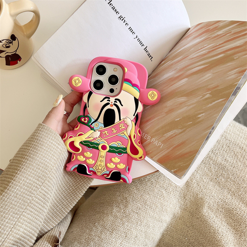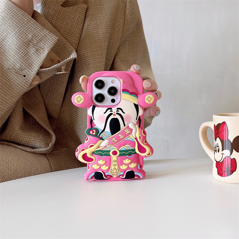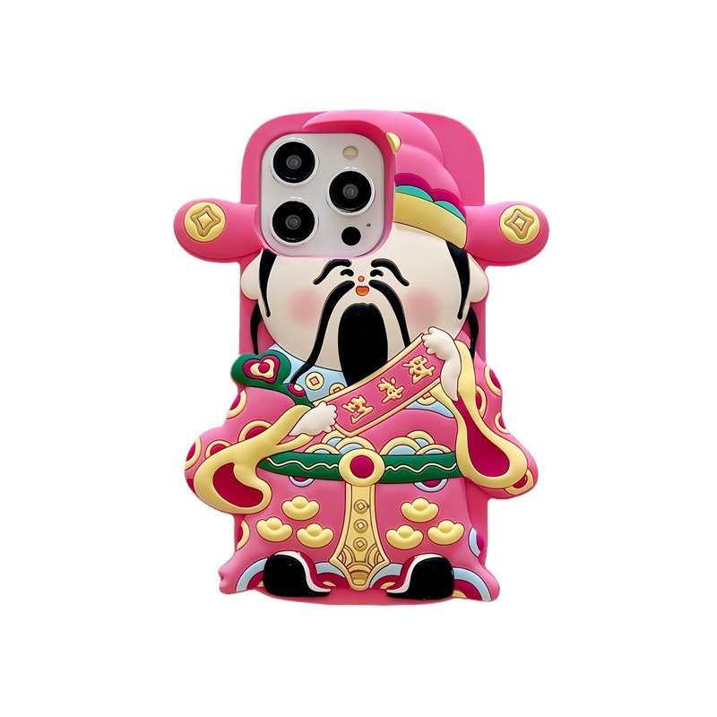 硅胶粉色财神爷15pro苹果13手机壳iphone13pro max全包14软壳适用