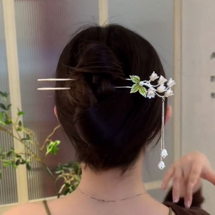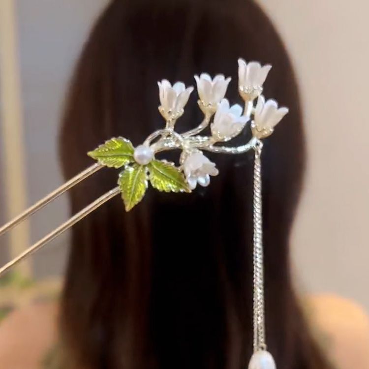 铃兰花发簪新中式古风流苏缠花步摇钗子汉服旗袍配饰气质簪子发饰