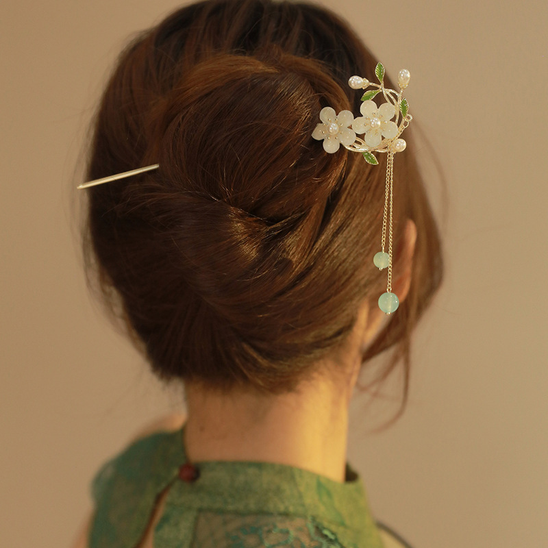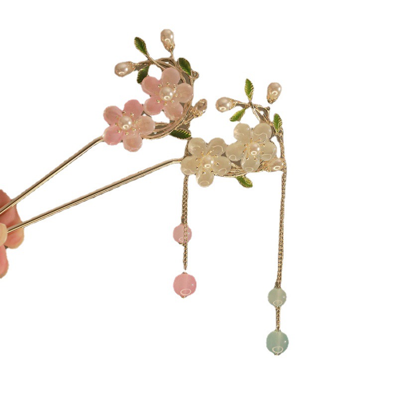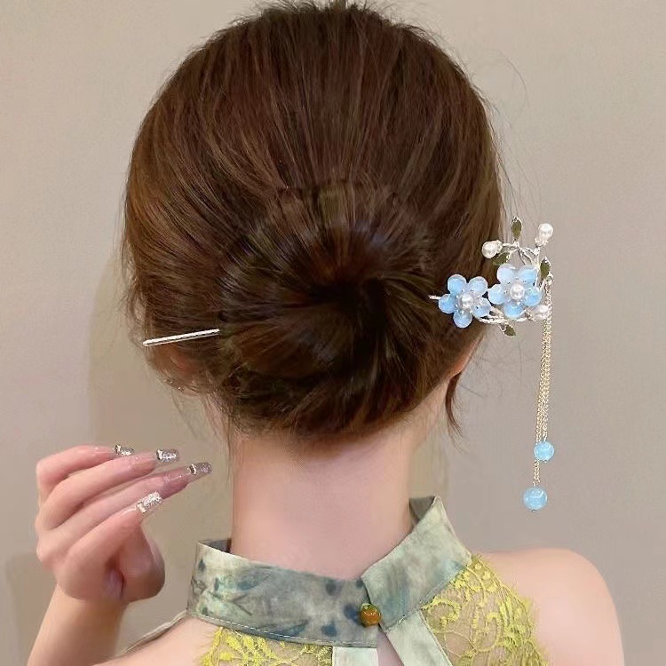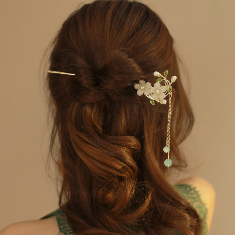 仙女花朵发簪古风高级感簪子后脑勺合金头饰优雅旗袍汉服配饰