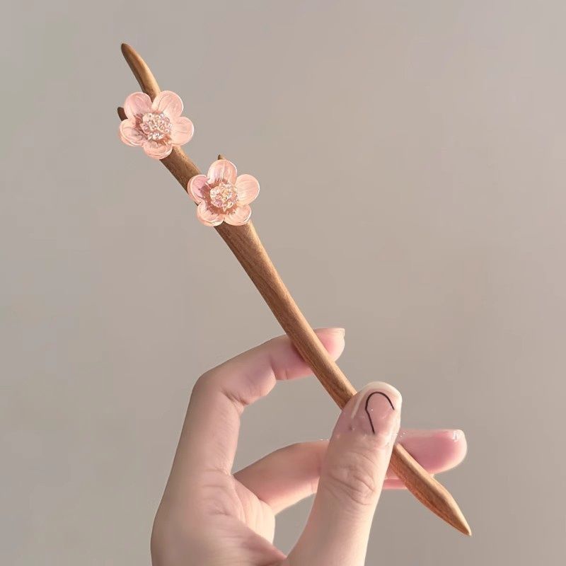 ins桃花赋新国风桃木花朵发簪 新中式高级感盘发钗子气质小众发饰