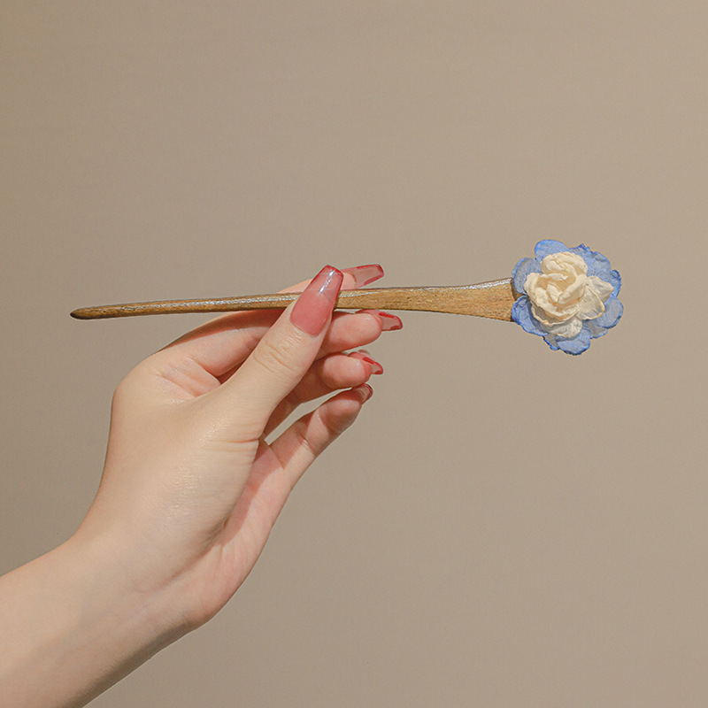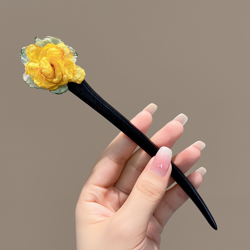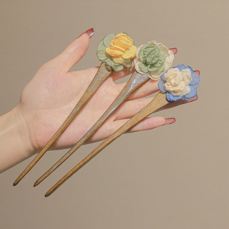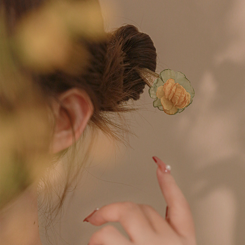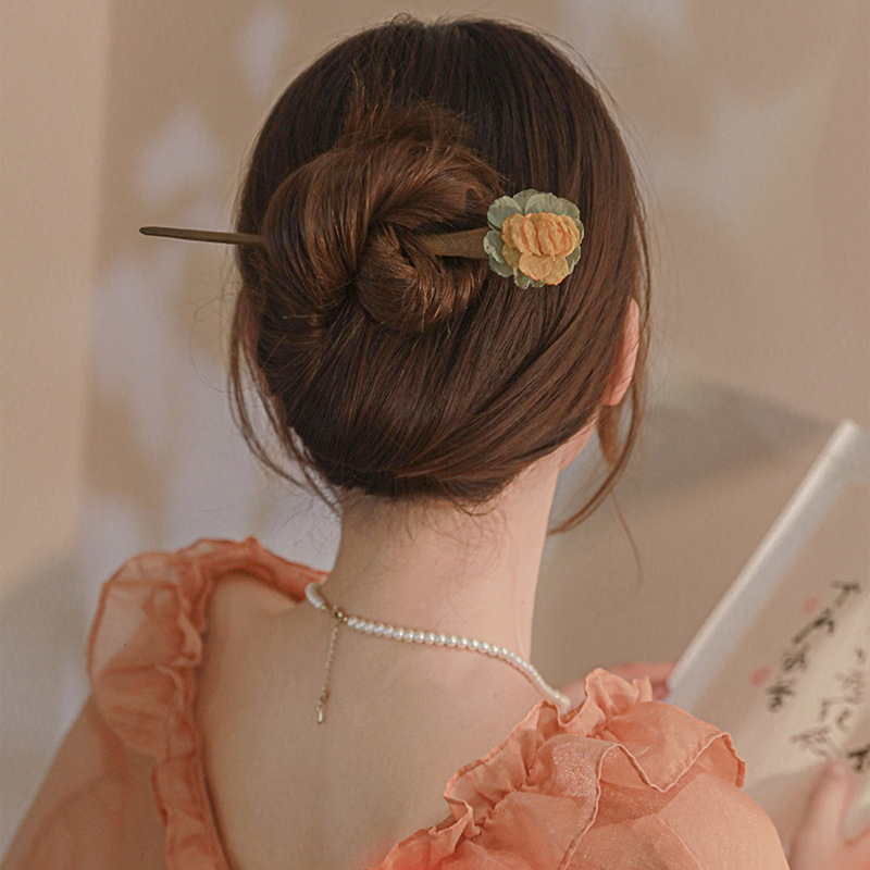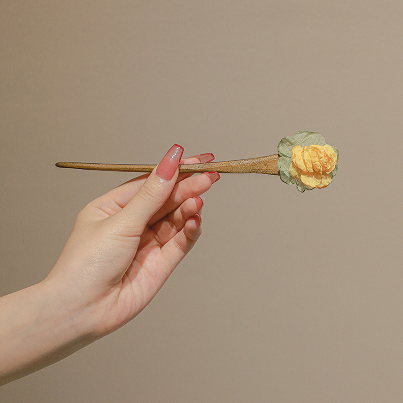 文艺小清新山茶花发簪女古风汉服头饰复古干枯花朵木簪子简约发饰