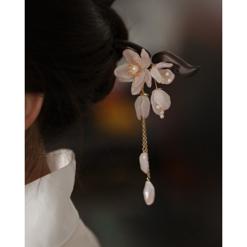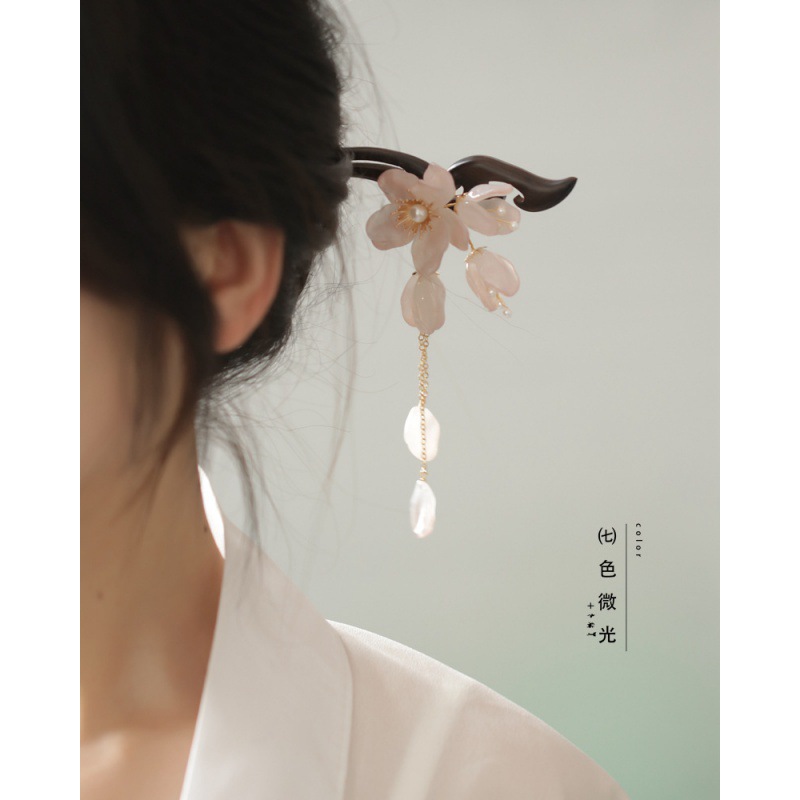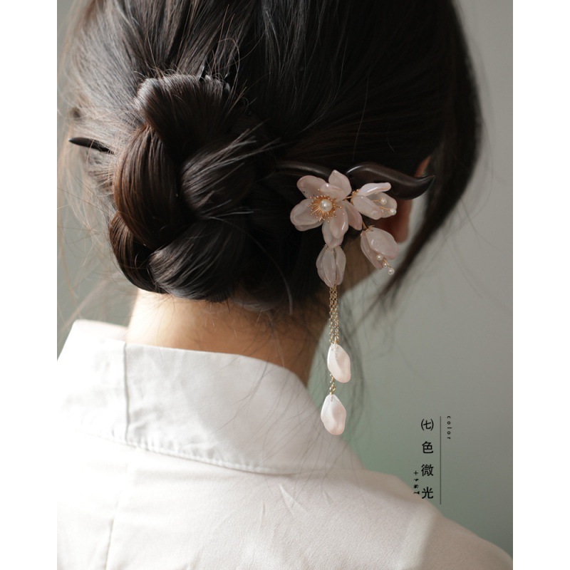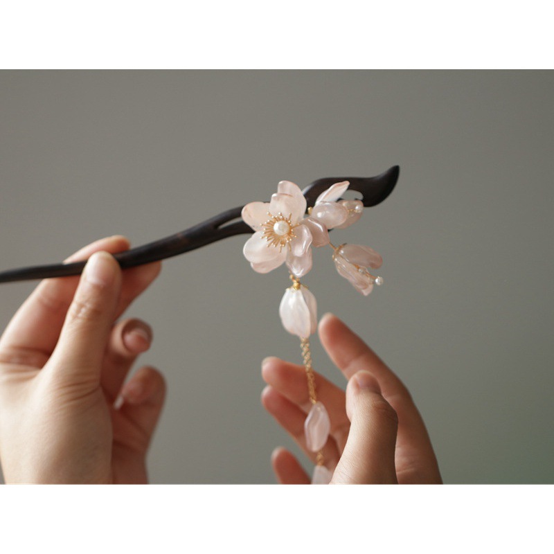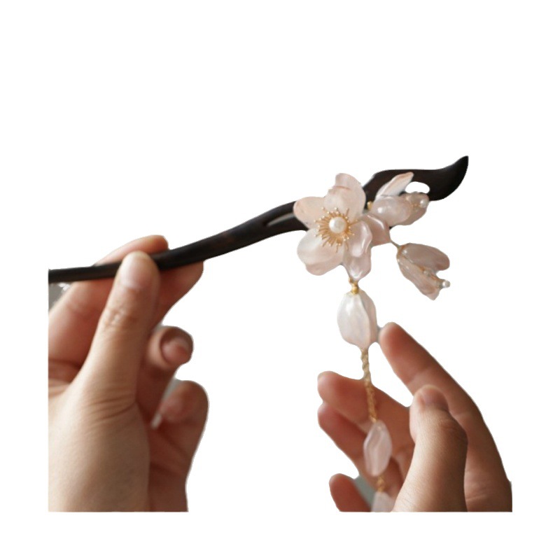ins新中式发簪高级感国风旗袍茶服木簪流苏气质木质黑檀木盘发簪