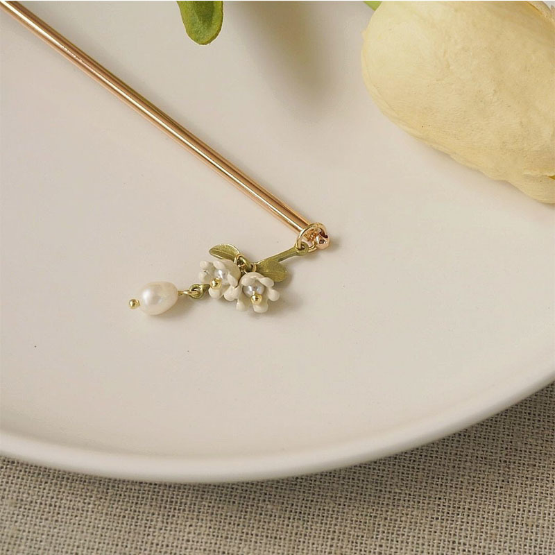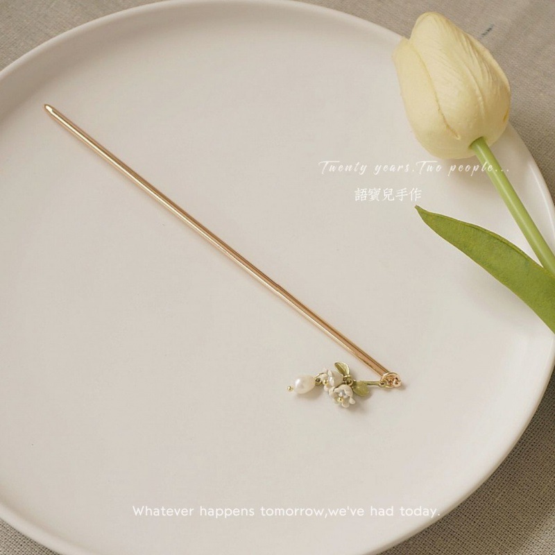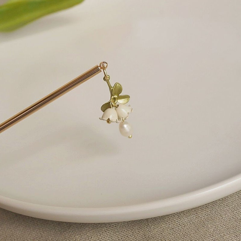 小清新花朵铃兰花发簪盘发簪子女小众设计高级感气质甜美流苏发饰